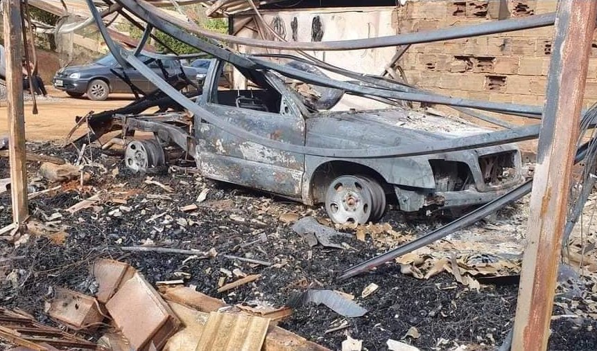 ALTO JEQUITIBÁ (MG) - Incêndio destrói carro e parte de casa em Alto Jequitibá, na noite de sábado, 27/08.