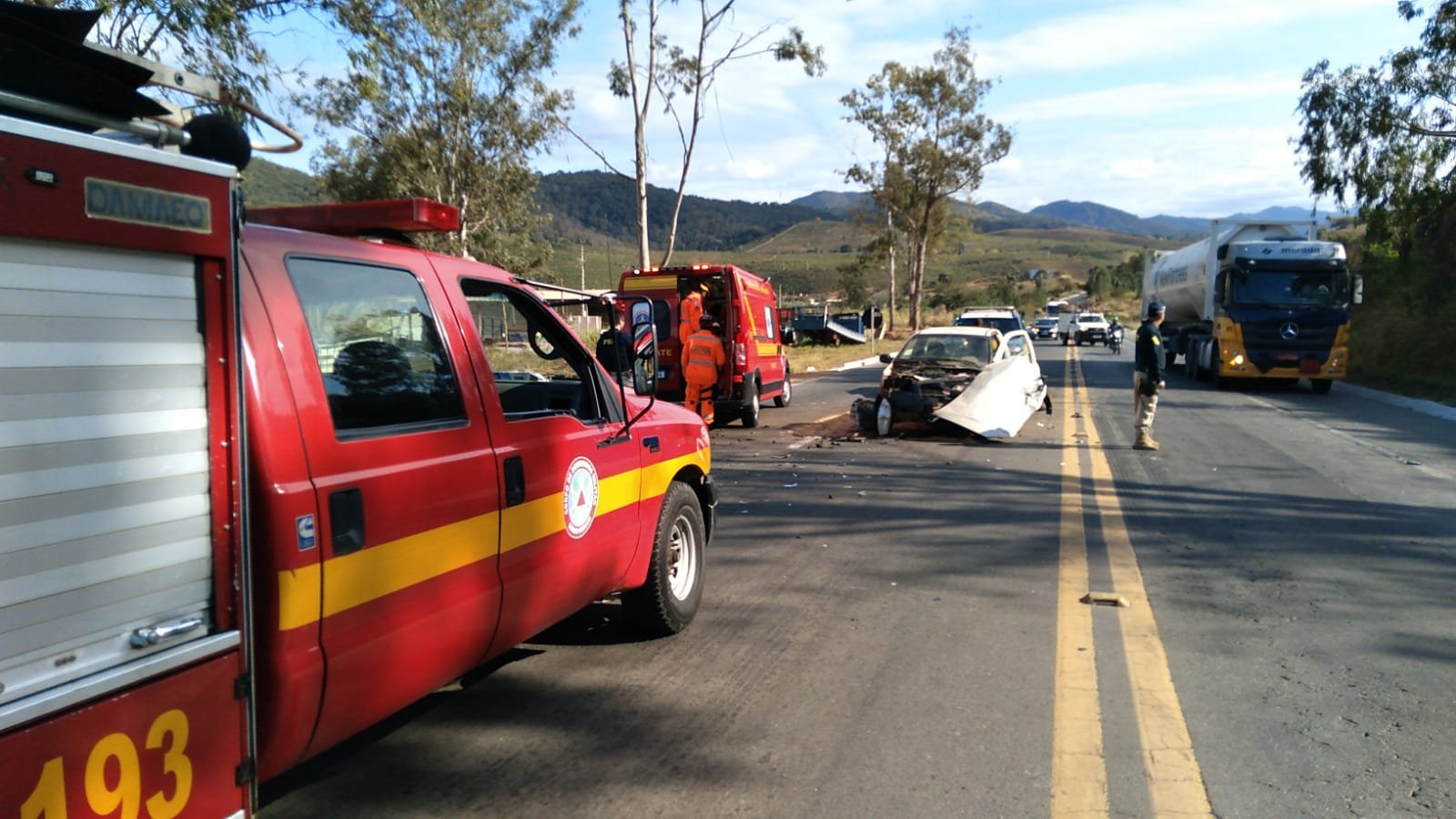 MANHUAÇU (MG) - O Corpo de Bombeiros de Manhuaçu e a Polícia Rodoviária Federal atenderam acidente no trecho da BR-116, próximo à pedreira de Vilanova, em Manhuaçu.