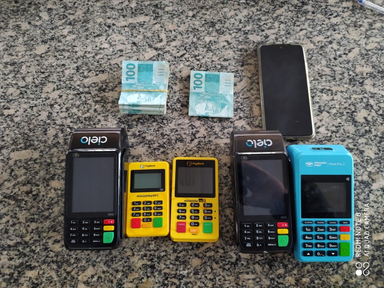 Na quinta-feira (1), policiais rodoviários federais abordaram os acusados em Manhuaçu. Eles foram detidos e conduzidos até a 6ª Delegacia Regional de Manhuaçu, onde foram autuados em flagrante pelos crimes de furto qualificado e estelionato. Com os suspeitos, foram encontrados cinco máquinas de cartão e R$ 7,400 em espécie, que também foram apreendidos e encaminhados até a delegacia.