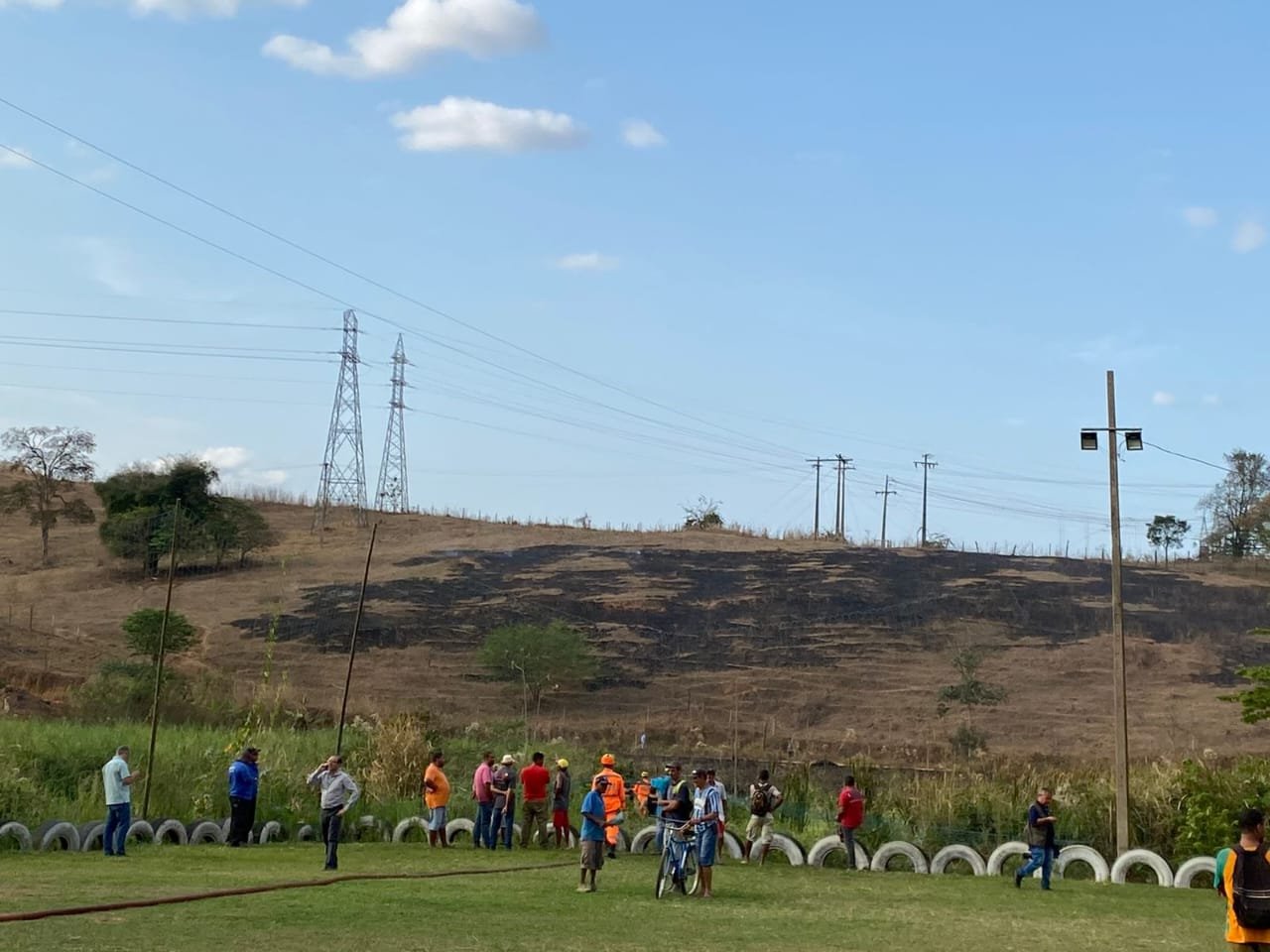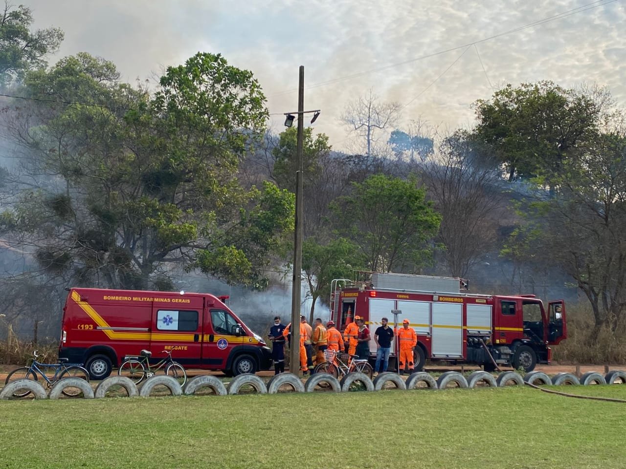 Por ter atingido a fiação elétrica, a Companhia Energética de Minas Gerais (Cemig) foi chamada para cortar a energia.