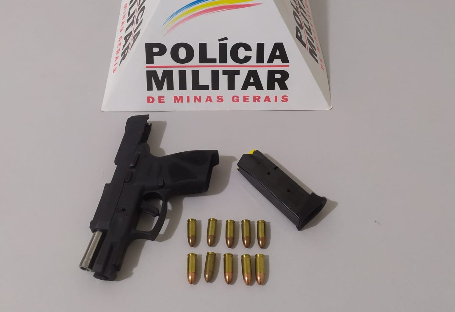 As equipes realizaram diligências e conseguiram localizar o autor e apreender a arma de fogo, 01 pistola calibre 09 milímetros, com 10 munições.