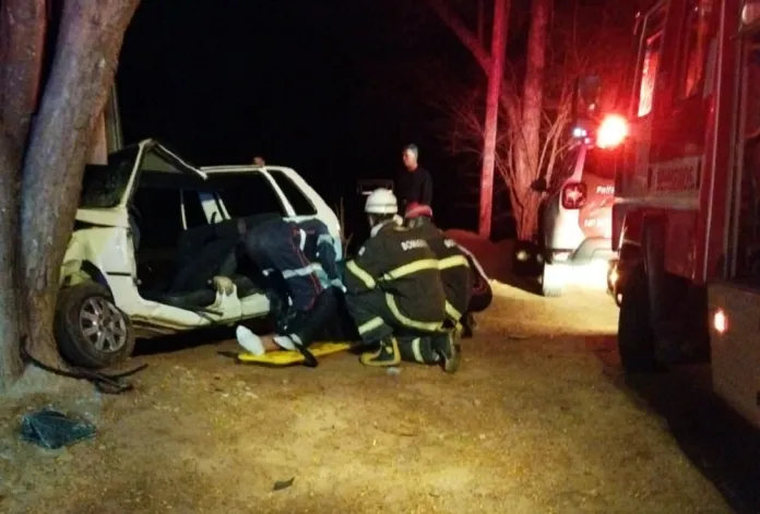 IÚNA (ES) - Cinco pessoas ficaram feridas após o carro em que estavam bater contra uma árvore. O acidente ocorreu na madrugada deste sábado (8) na ES 185, em Iúna, na região do Caparaó. O motorista perdeu o controle da direção, bateu em placas de sinalização e depois colidiu contra uma árvore. Ele acabou ficando preso às ferragens e o Corpo de Bombeiros foi acionado para o desencarceramento.