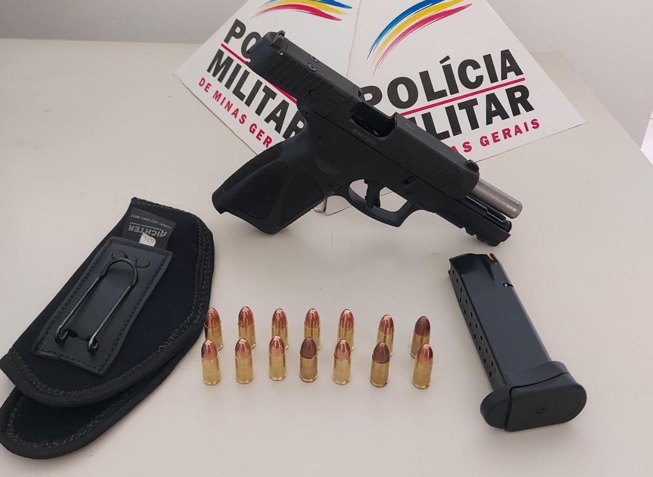 Em posse das informações a equipe policial militar conseguiu realizar a abordagem do denunciado e localizar com ele uma arma de fogo, pistola calibre 9 mm, além de 14 munições do mesmo calibre.
