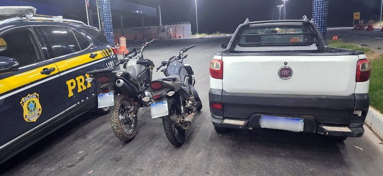 Ao chegarem no local, o indivíduo estava estacionado em uma caminhonete que continha as duas motocicletas citadas, na carroceria. As motocicletas apresentavam diversas adulterações nos seus sinais identificadores, e através de alguns dos sinais foi possível identificar ambas com registro de roubo em Belo Horizonte/MG, nas respectivas datas 24/09/2022 e 05/10/2022. Ao ser questionado sobre a origem das motos, o negociador informou que adquiriu os veículos no dia 04/10/2022, em uma loja localizada na cidade de Inhapim.