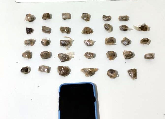 Foram realizadas buscas, sendo localizadas em sua mochila 33 buchas de maconha preparadas para a comercialização.