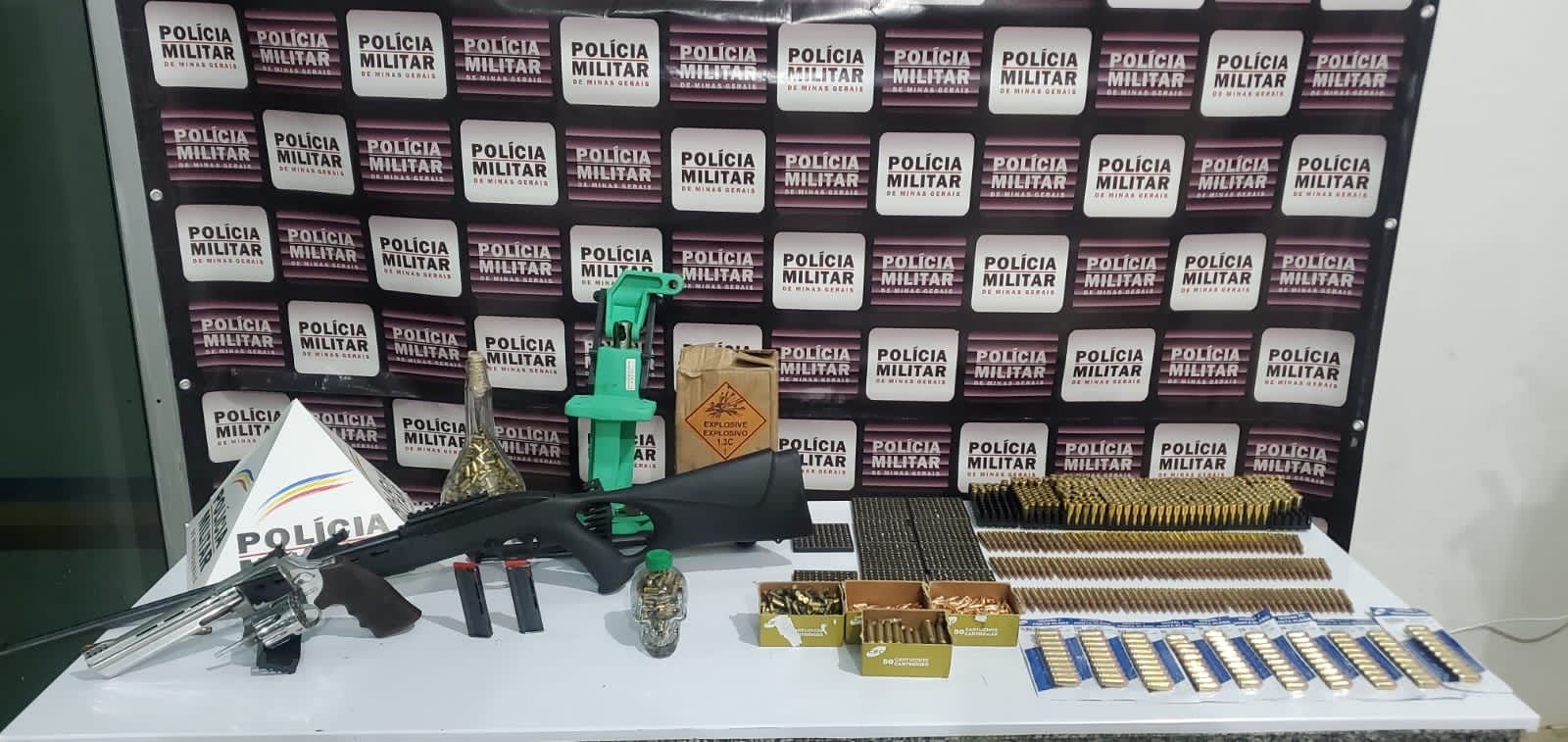 Além das armas, também foram encontradas, no alçapão, vasta quantidade de munições e estojos de diversos calibres, além de espoletas, pólvora e uma máquina de recarga de munição.