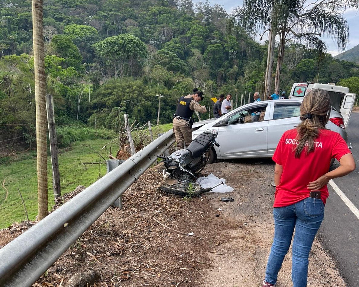 Segundo as informações iniciais, o condutor da moto seguia na rodovia quando bateu num automóvel.