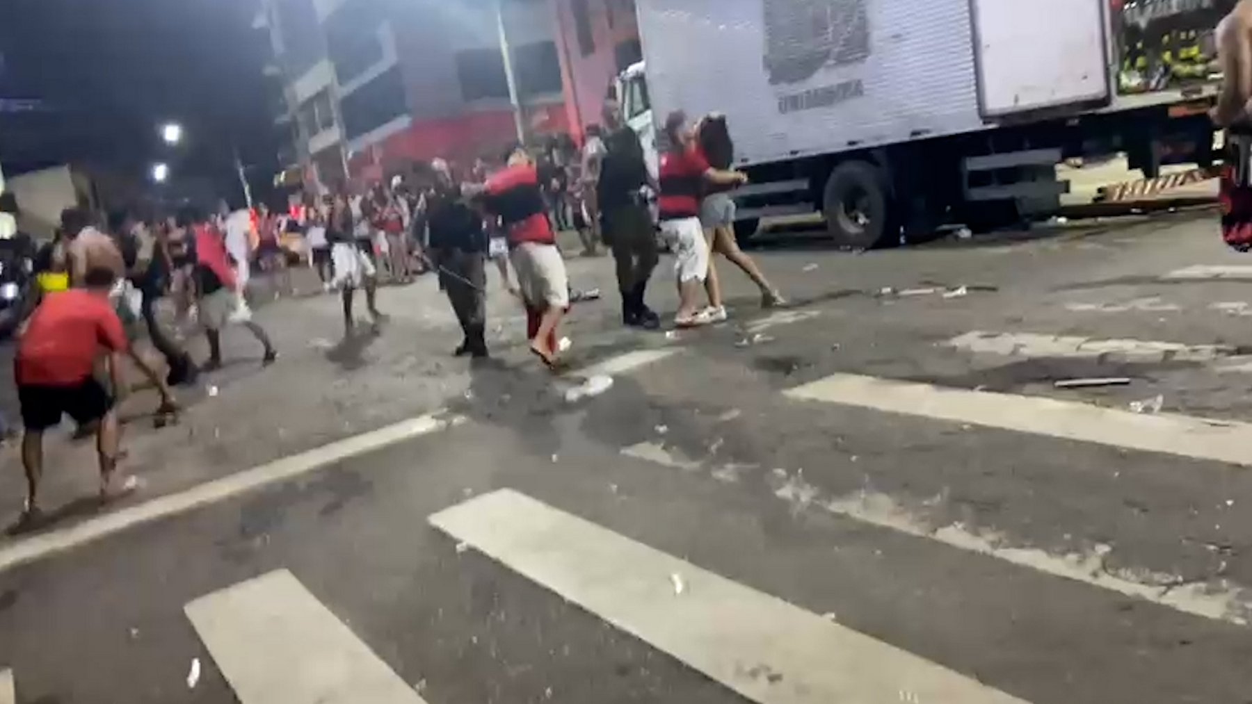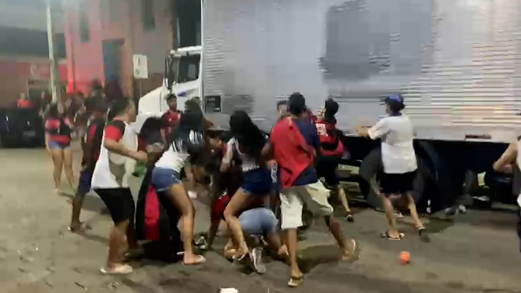No local os militares depararam com as envolvidas se agredindo mutuamente no chão. Ao tentarem intervir na contenda vários indivíduos de posse de bastões utilizados para afixar as bandeiras e garrafas se aproximaram tentando intervir na ação policial, com xingamentos e arremesso de objetos, sendo necessário uso de agente de pimenta e bastão tonfa para dispersar os envolvidos.