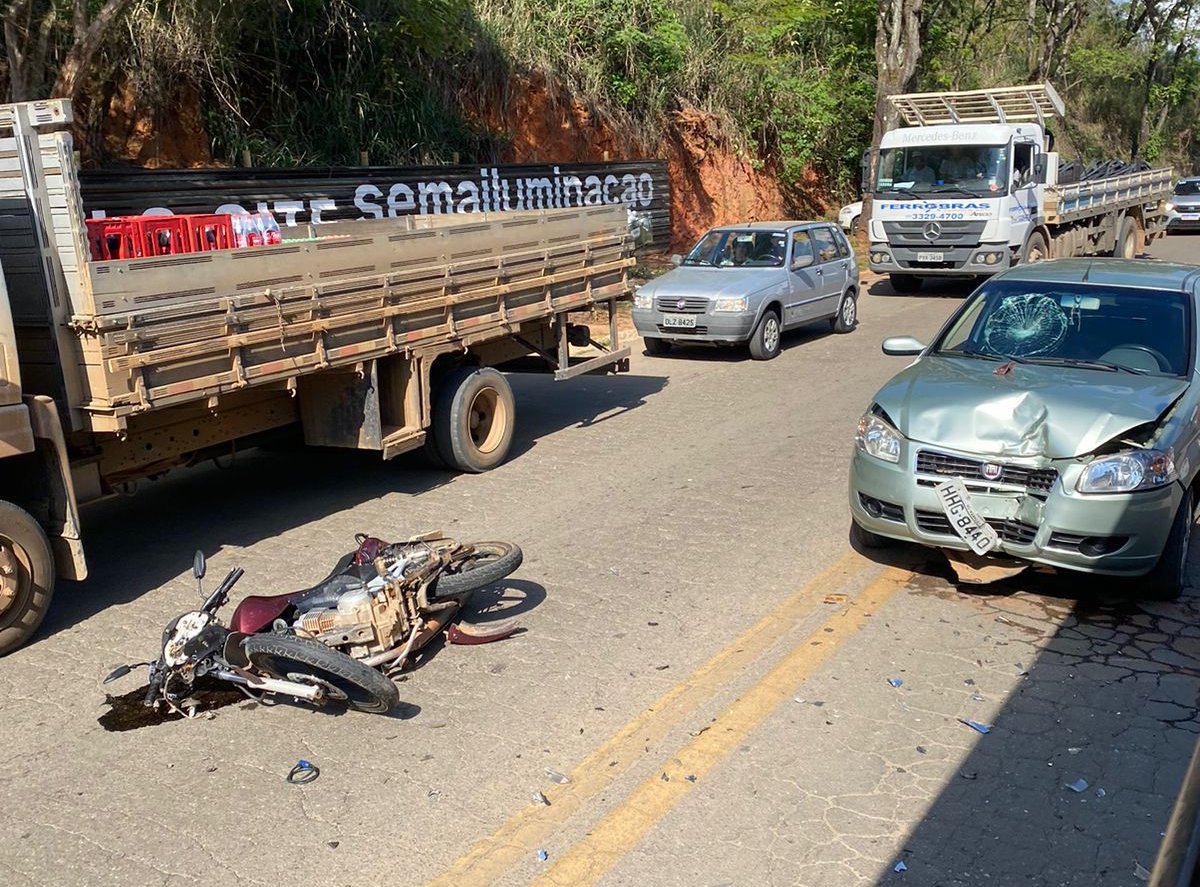 MANHUAÇU (MG) - O condutor de uma motocicleta ficou ferido numa colisão com um automóvel, na manhã desta segunda-feira, 07/11, no perímetro urbano da BR-262, no bairro Bom Jardim, em Manhuaçu.