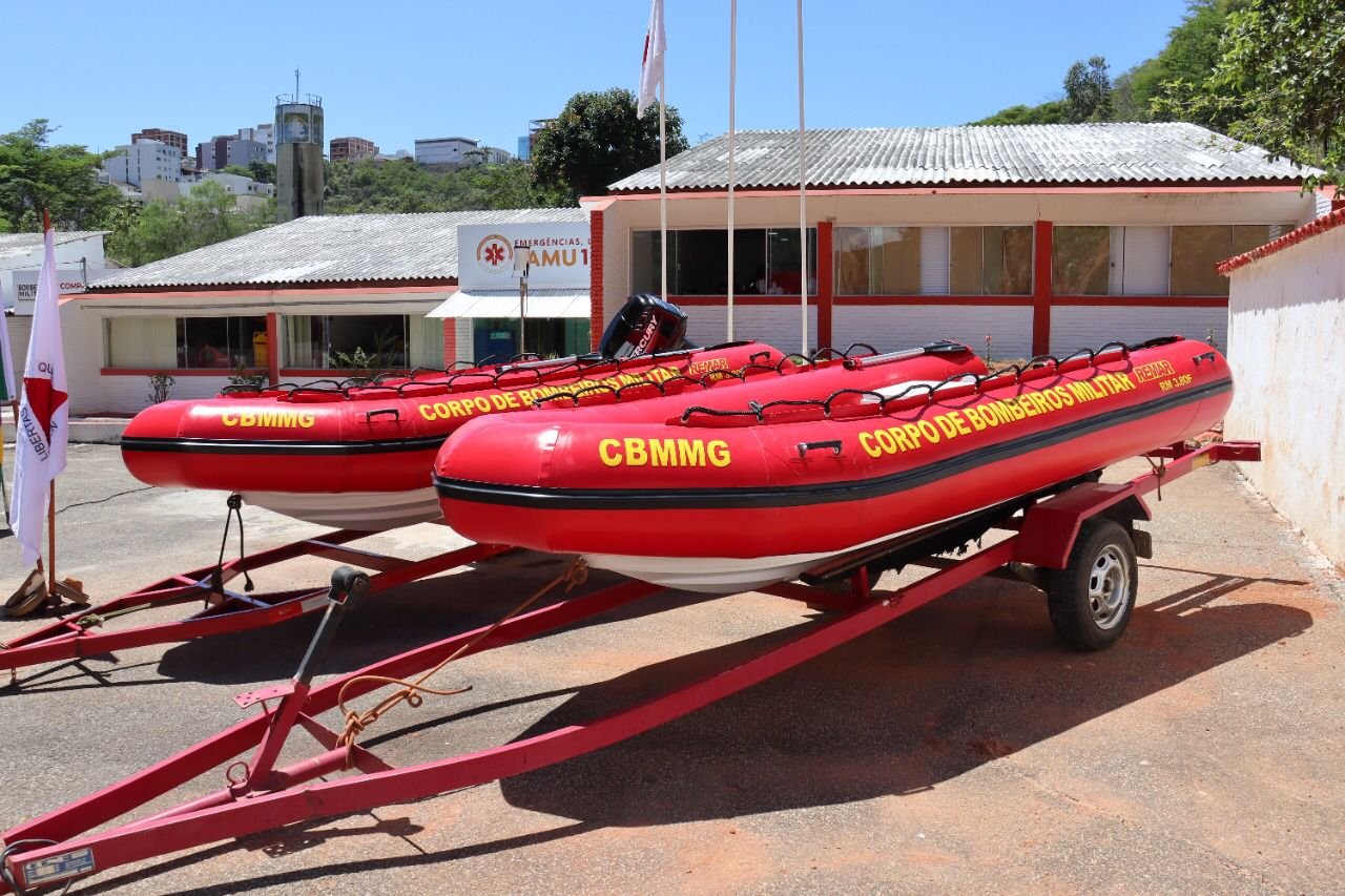 MANHUAÇU (MG) - O Corpo de Bombeiros de Manhuaçu apresentou nesta sexta-feira, 18/11, dois barcos e um motor de popa de 30 HP para atendimento na região durante solenidade na sede da 2ª Companhia do CBMMG. As modernas embarcações poderão ser empregadas em ocorrências de enchentes e inundações para o salvamento de pessoas que se encontrem isoladas ou em situação de risco, busca e regaste de corpos submersos, prevenção aquática, entre outras atividades.