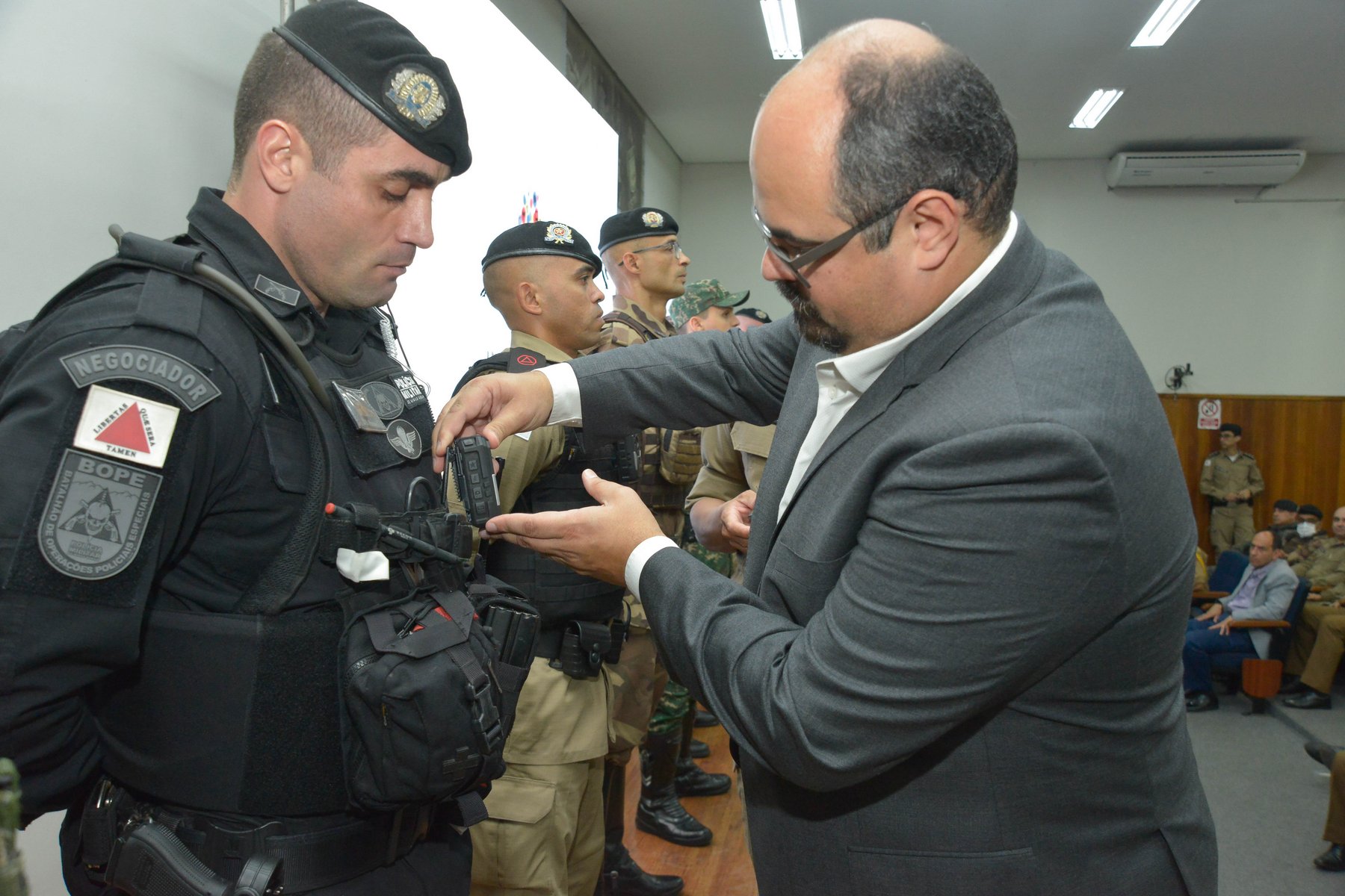 "A Polícia Militar, ao longo dos 247 anos, se mostra uma instituição aberta à inovação e que se atualiza constantemente. Fizemos um aprofundamento do uso das câmeras e agora a entrega é uma realidade. A ideia é ter uma aquisição continuada e progressiva", adiantou o comandante-geral da Polícia Militar de Minas, coronel Rodrigo Sousa Rodrigues. "O equipamento será uma ferramenta que vai complementar a atuação do policial, para que seja prestado um serviço de qualidade à população, além da transparência e da legitimidade que as imagens proporcionarão", completou.
