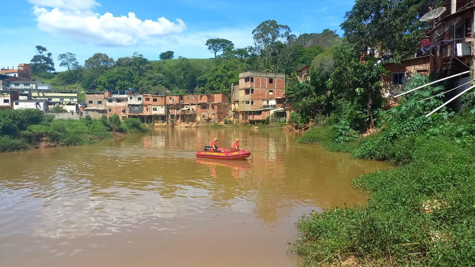 Por causa das últimas chuvas, a água encontra-se com alta turbidez e forte correnteza, inviabilizando o mergulho dos militares. Foram feitas as buscas com barco e estaqueamento no leito do rio.