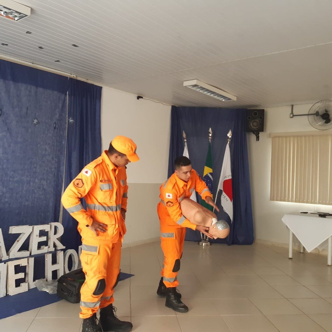 Os militares Cabo BM Ozanan e Soldado BM Gambarti demonstraram aos funcionários da empresa algumas técnicas de atendimento pré-hospitalar para serem realizadas em caso de emergências na empresa, até a chegada do socorro.