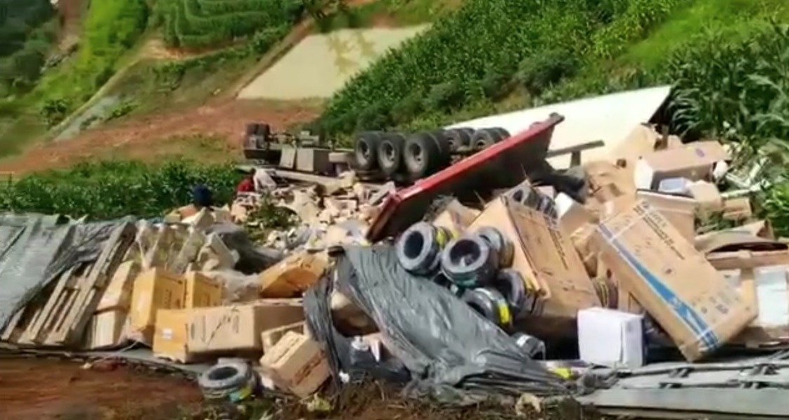 Imagens gravadas após o acidente mostram populares tentando ajudar a retirar o motorista das ferragens. A carga ficou toda espalhada pela ribanceira. As causas do acidente ainda não foram informadas pela Polícia Rodoviária Federal (PRF).