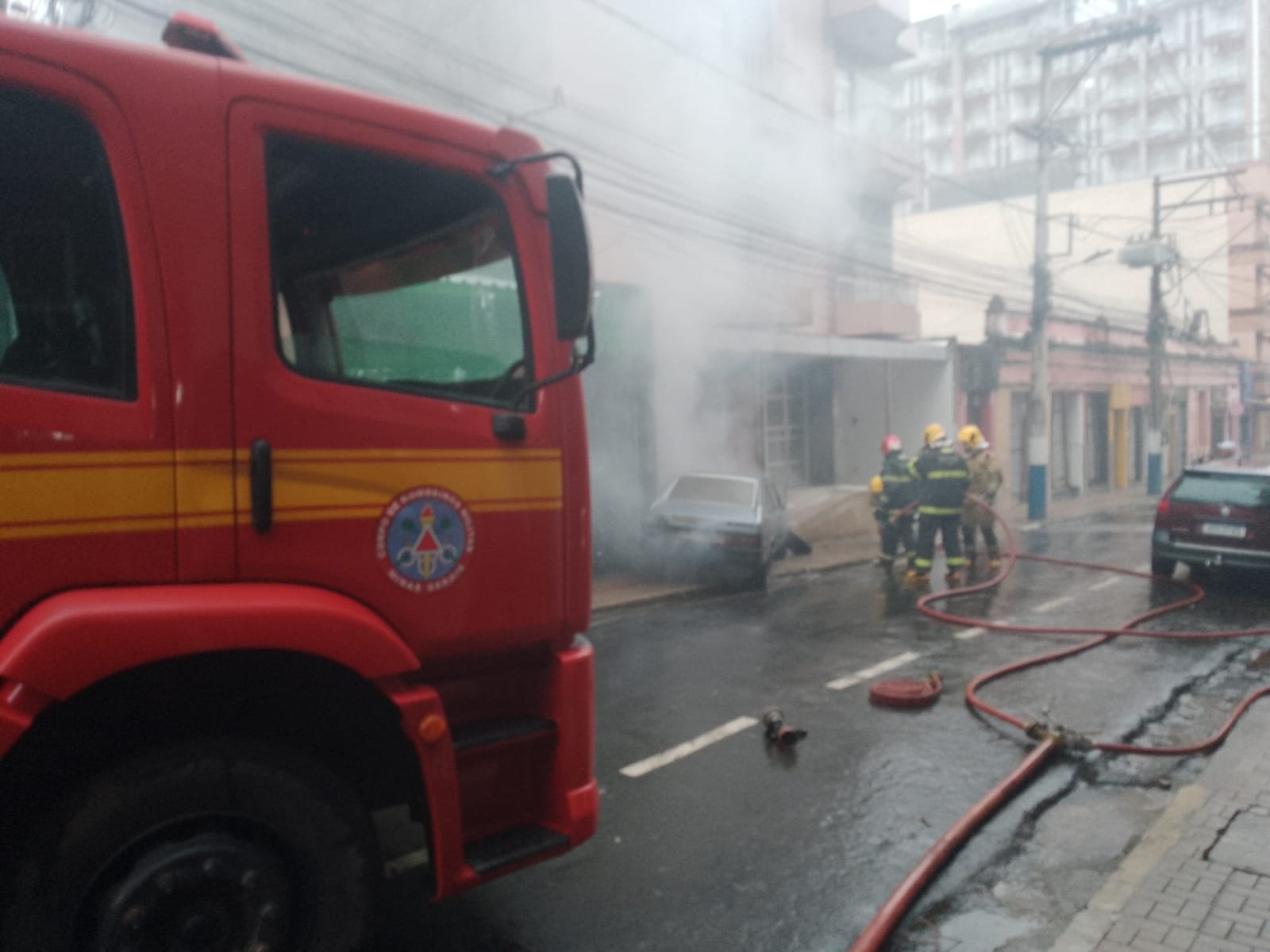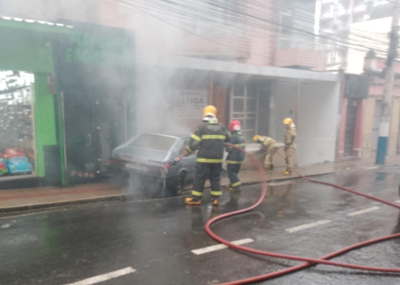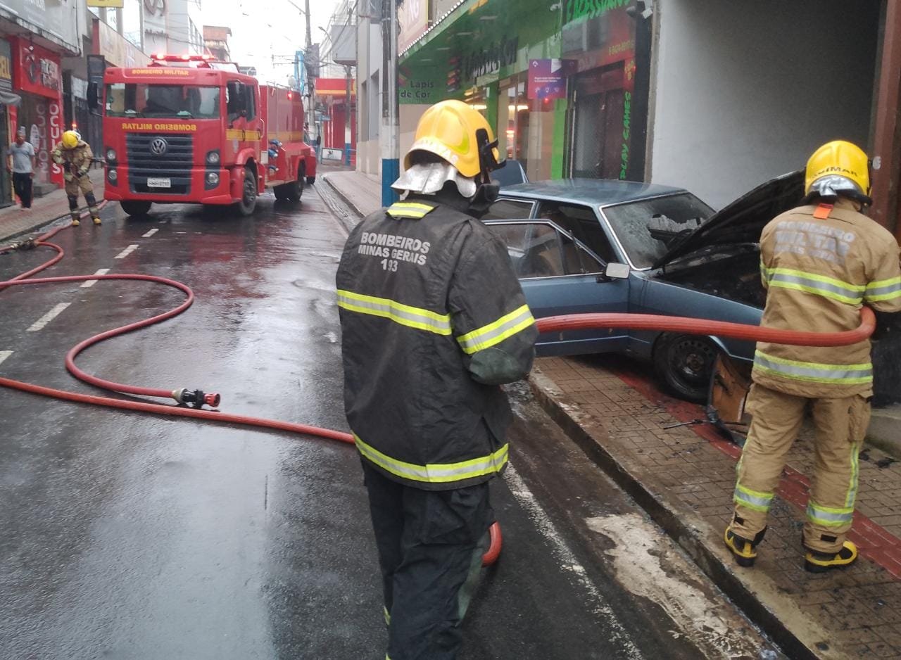 MANHUAÇU (MG) - O Corpo de Bombeiros atendeu um incêndio em um carro na rua Amaral Franco, no centro de Manhuaçu, por volta de 6 horas, nesta terça-feira, 27/12.
