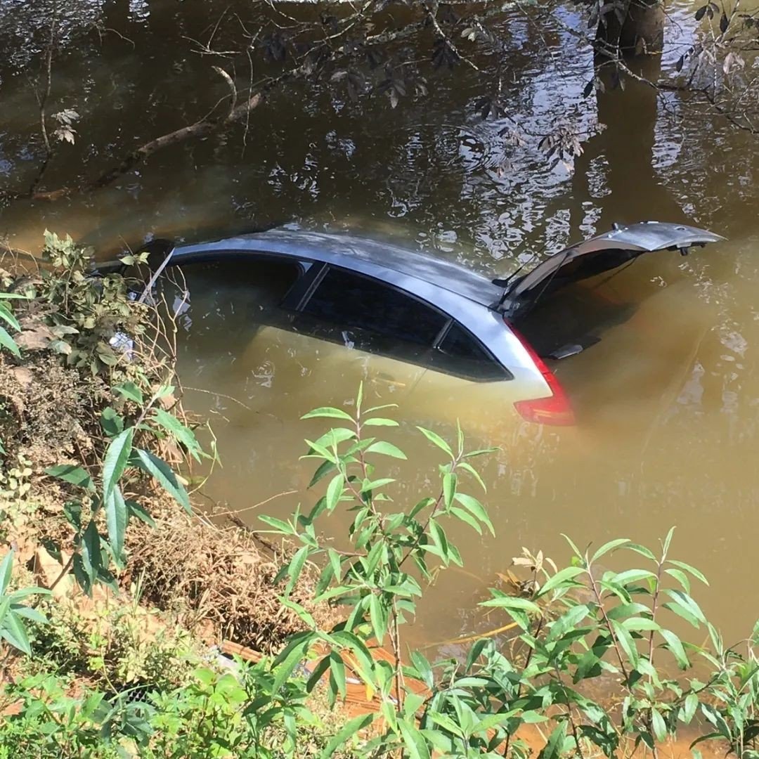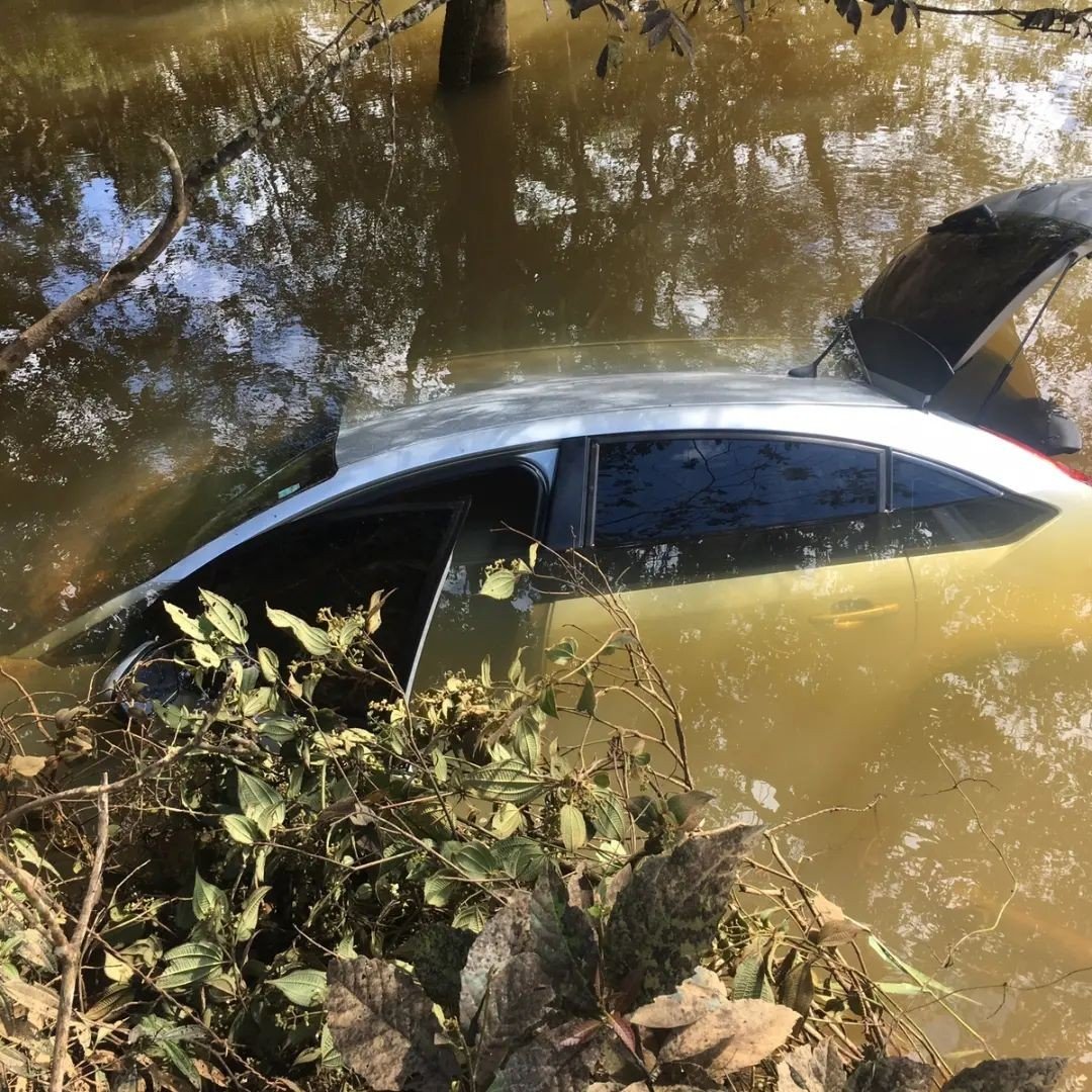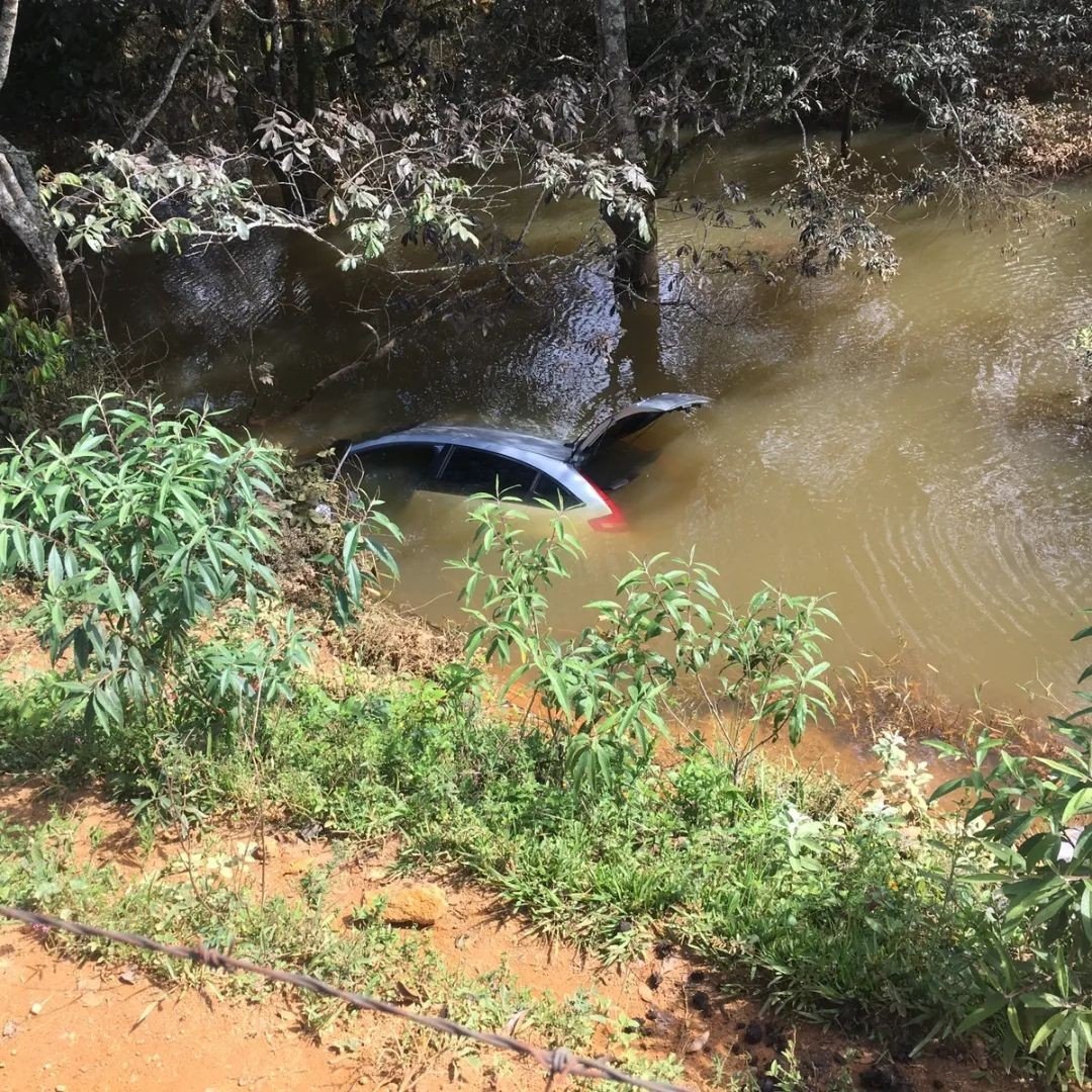 Um carro, modelo Citroën, que estava seguindo em direção a cidade de Pedra Dourada pela AMG 2945, saiu da pista e acabou parando dentro de um lago, em uma área muito conhecida no município como "cambuta” - área de preservação ambiental.