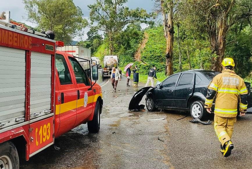 O acidente foi uma colisão frontal entre um Ford Fiesta e uma Scania. Os bombeiros precisaram cortar as ferragens para retirar a passageira do carro. Ela foi socorrida inconsciente com suspeita de traumatismo e fraturas nas pernas. Após a retirada, a mulher foi socorrida pela equipe do SAMU para o Hospital César Leite. A outra vítima do carro, Gilberto Braga do Carmo, 42 anos, foi socorrida na unidade do Corpo de Bombeiros com escoriações e suspeitas de fratura na face e no tórax.