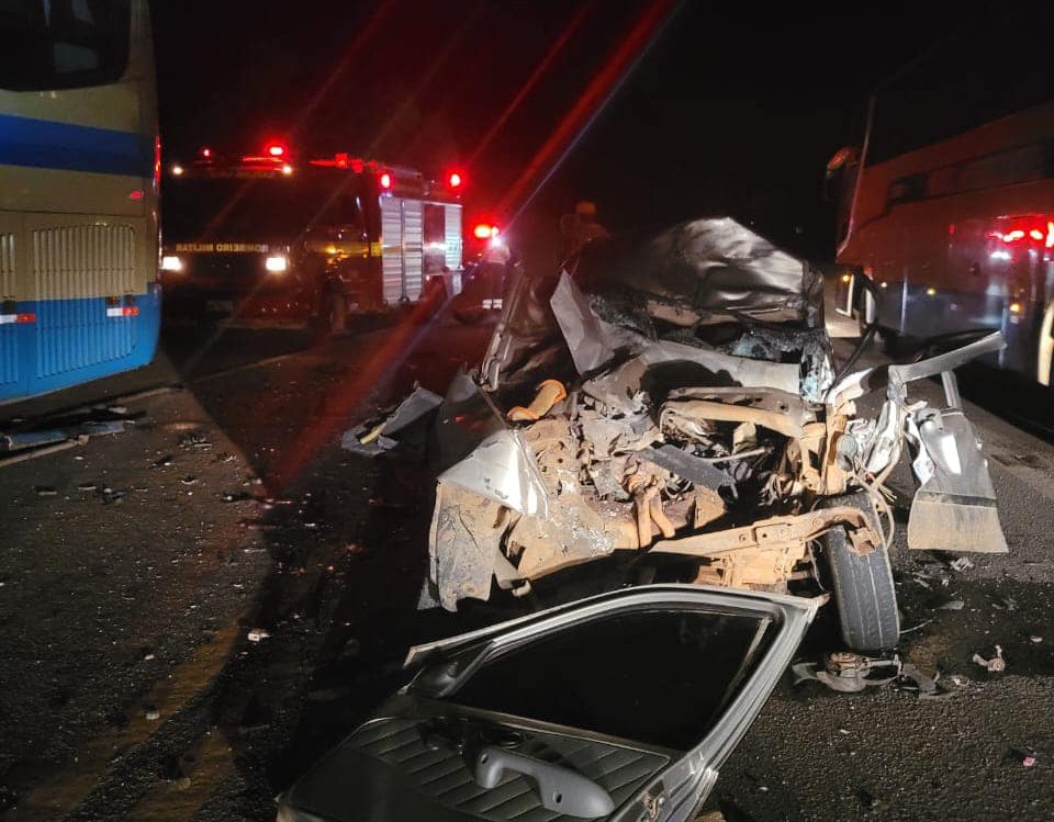 DOM CAVATI (MG) - Motorista morre e passageira fica ferida em gravíssimo acidente envolvendo ônibus e carro. A colisão entre um Fiat Palio e um ônibus da Viação Novo Horizonte aconteceu no KM 479 da BR-116, em Dom Cavati, na madrugada deste domingo (15/01).