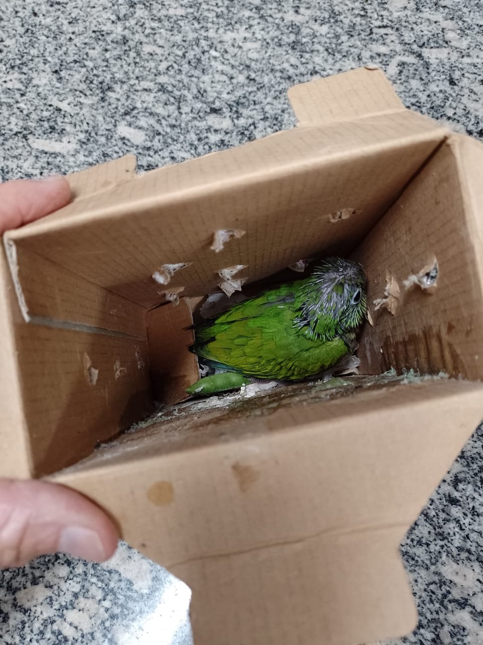 Ao procederem com a fiscalização, os policiais encontraram no banco traseiro do automóvel duas caixas contendo dois animais da fauna silvestre (periquito-da-caatinga).