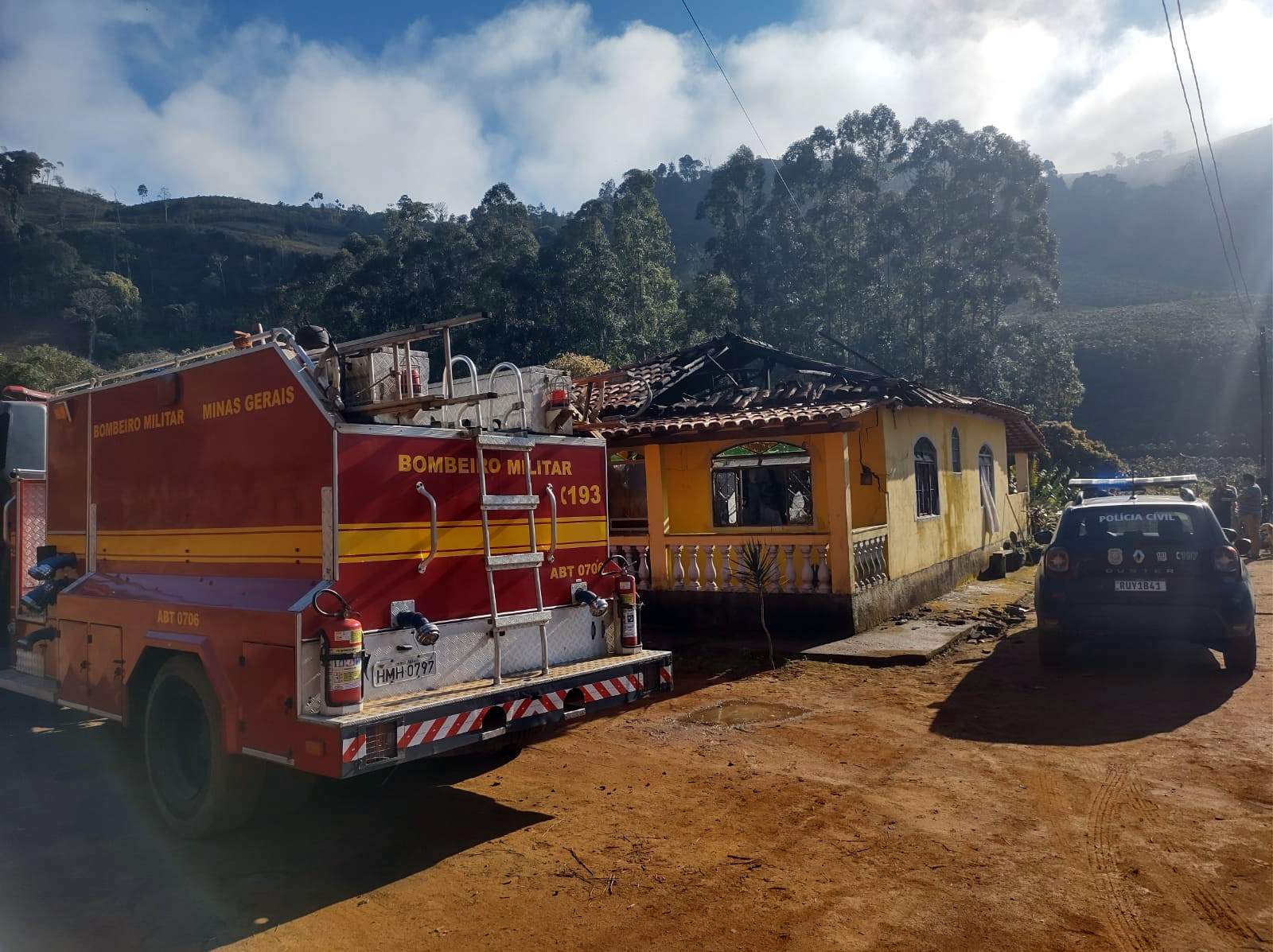 SIMONÉSIA (MG) - A 2ª Companhia do Corpo de Bombeiros de Manhuaçu atendeu ocorrência de um incêndio nesta terça-feira, 22/08, em uma residência no Córrego Alacrino, área rural de Simonésia.
