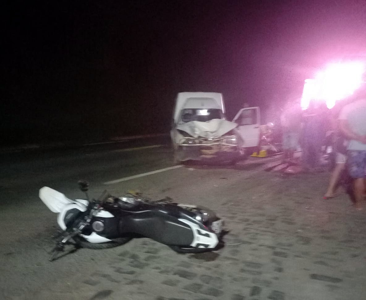 Duas pessoas foram socorridas com ferimentos. O acidente envolveu uma motocicleta e um veículo.