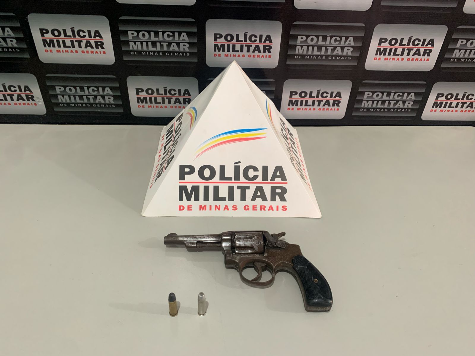 No local, as equipes localizaram o autor e durante a busca pessoal foi encontrada em sua cintura, 01 arma de fogo, tipo revólver calibre 38 com 02 munições.