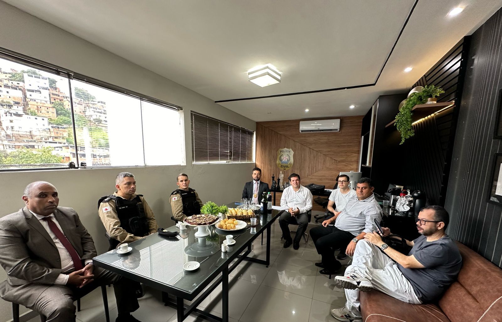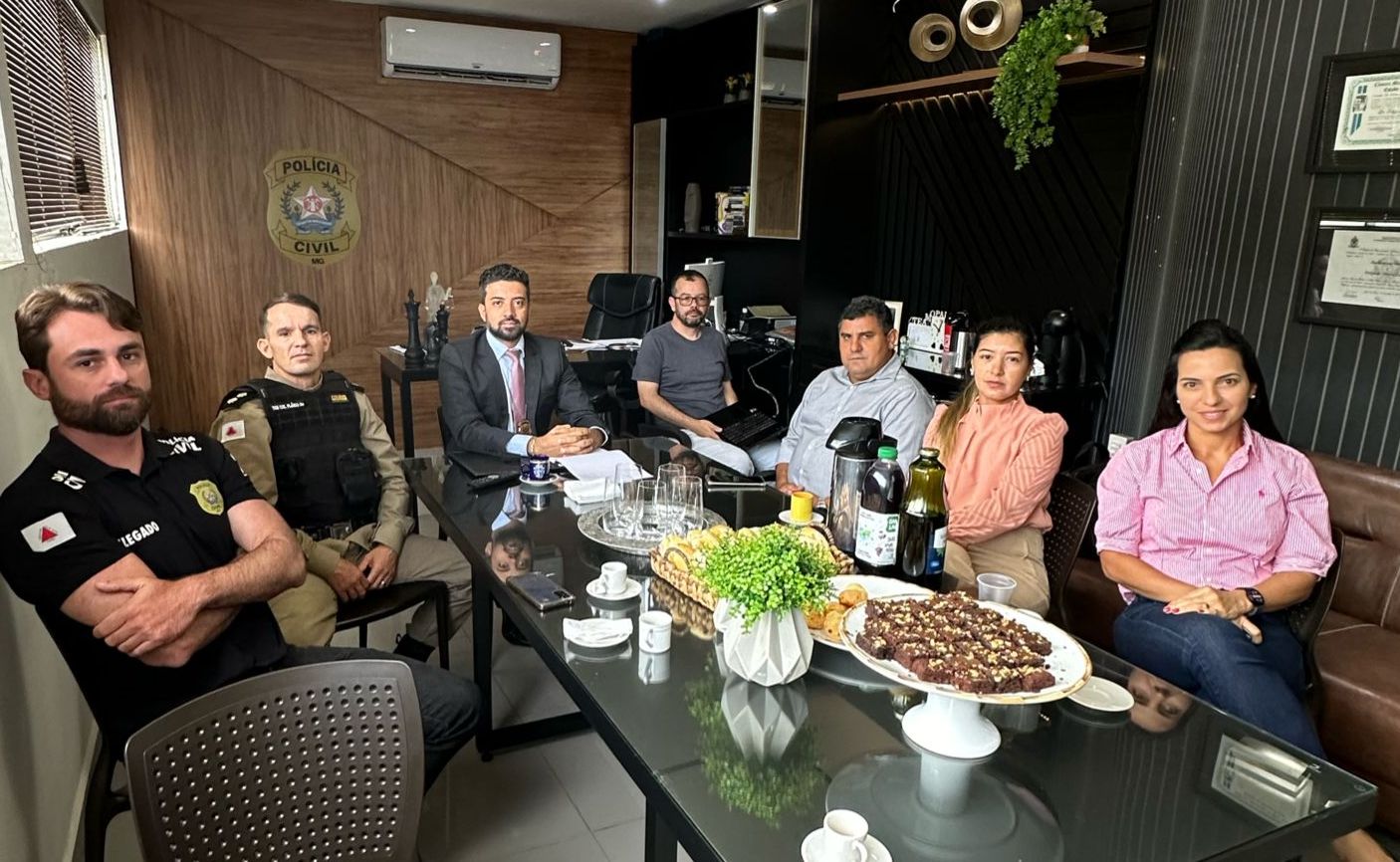 A reunião contou o Tenente-coronel Flávio e Delegado Regional Felipe Ornelas, bem como com as presenças do tenente Bruno, Inspetor Hernesto Francisco e Delegadas Adline Ribeiro e Thaís Orofino e Delegado Guilherme Mariano.