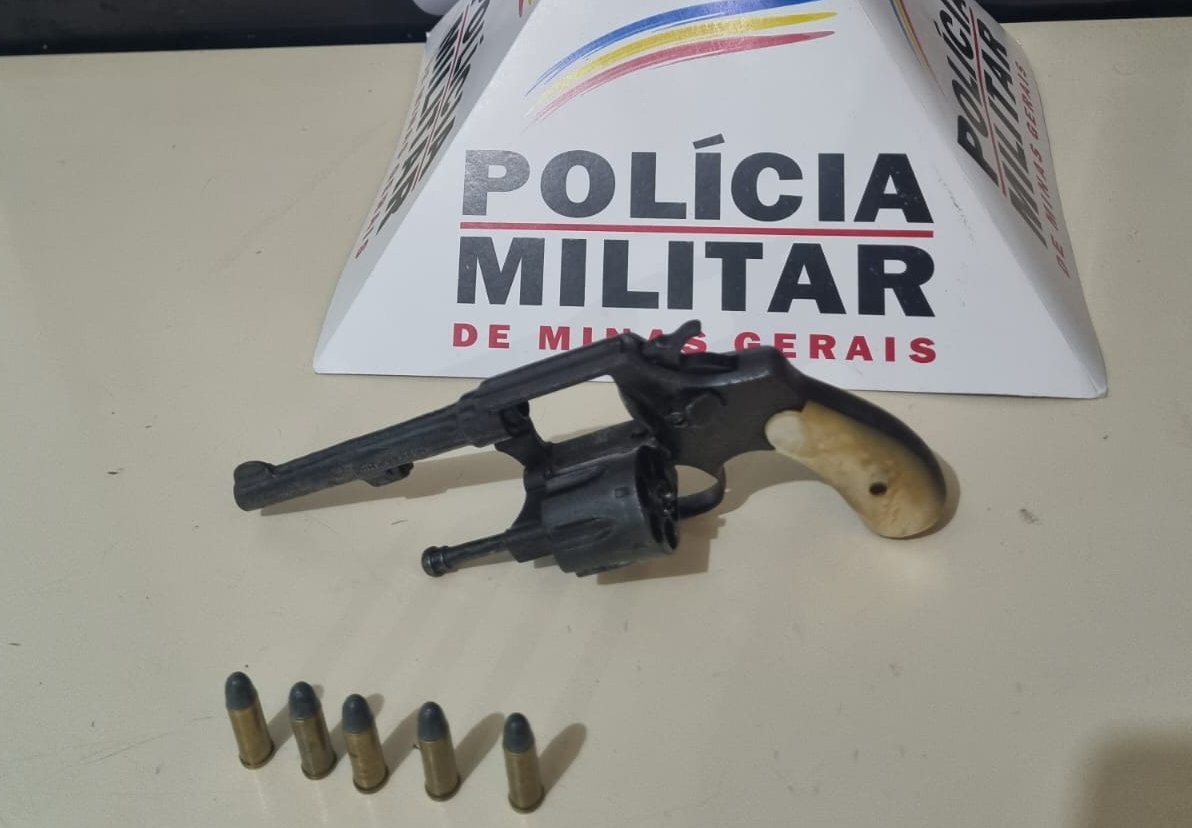 A arma, revólver cal .32, foi apreendida, municiada com cinco cartuchos intactos.