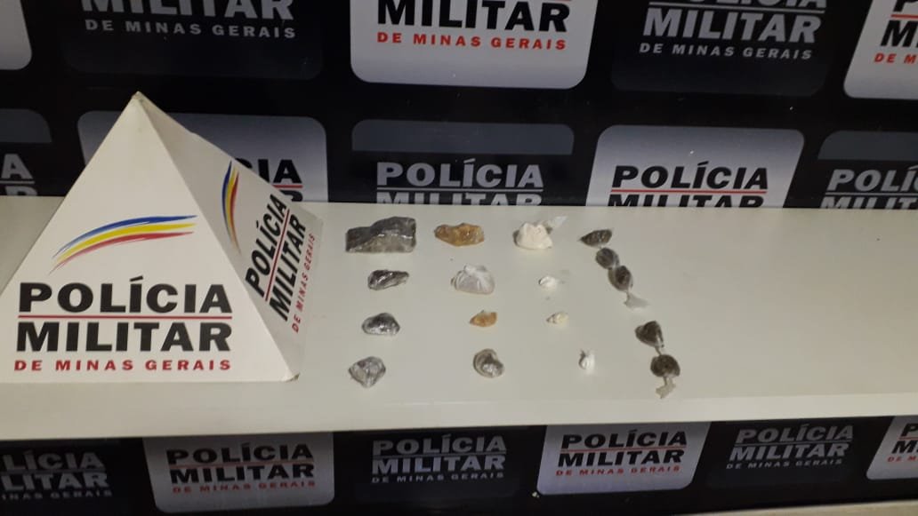 Durante as buscas no local comumente denunciado por ser utilizado para esconder entorpecentes, com appio da equipe ROCCA e dos cães de faro Kacau e Aquiles, foram localizadas 09 buchas e 01 tablete de maconha, 03 pedras de crack e 04 porções de cocaína.
