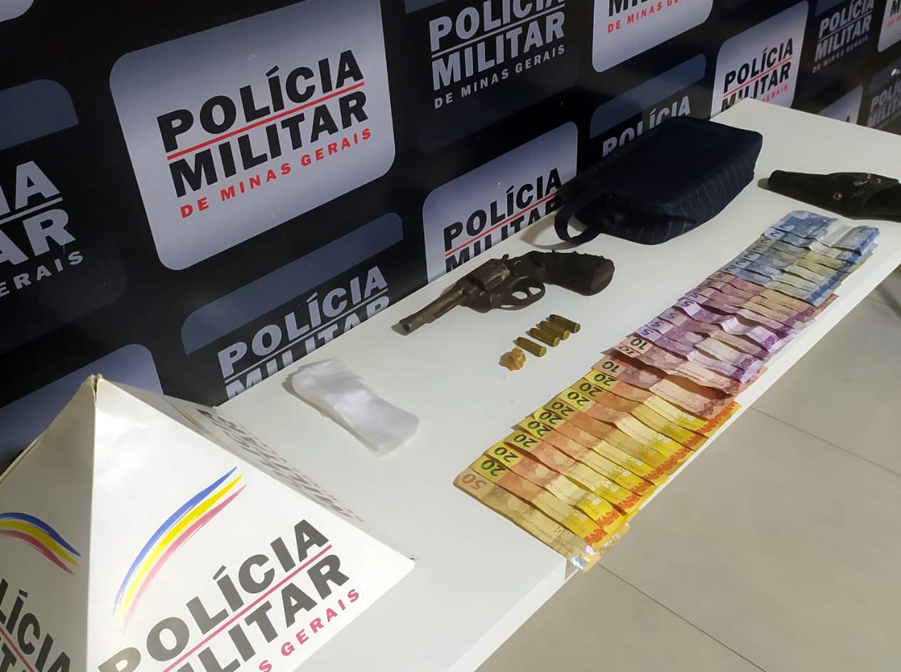 Os militares iniciaram incursão e conseguiram localizar o indivíduo, de 28 anos e durante as buscas foram encontrados 01 revólver calibre 38, 01 pedra de crack, R$314,00 e materiais para embalar as drogas.