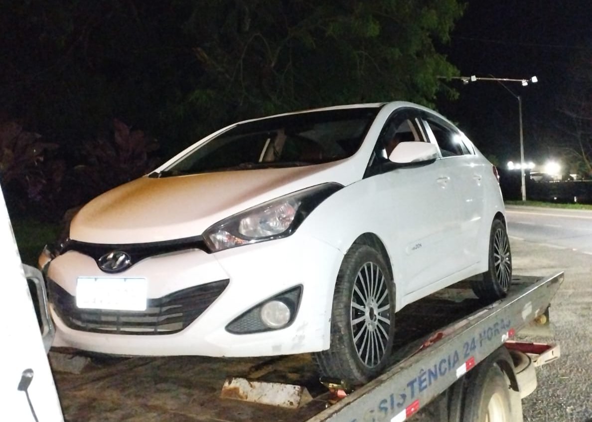 Os policiais rodoviários federais abordaram o veículo Hyundai HB20, de cor branca, com a placa LQV6C95. Observando superficialmente o automóvel, os policiais perceberam que alguns elementos identificadores estavam diferentes do padrão de fábrica.