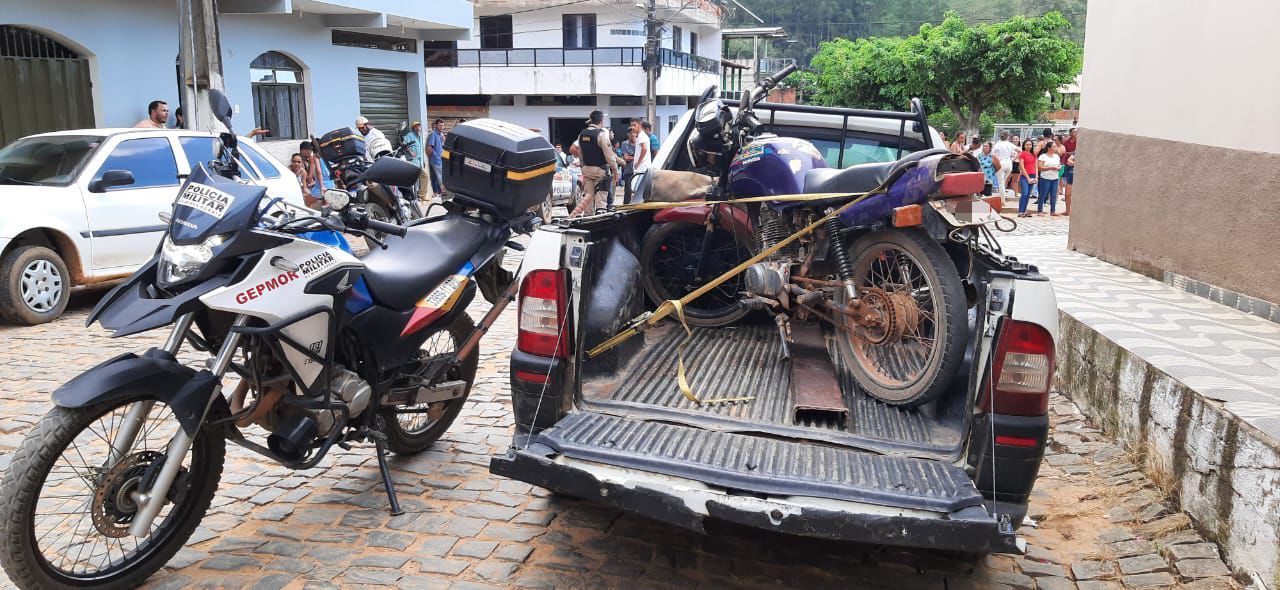 SANTANA DO MANHUAÇU (MG) - Nesta terça-feira, 19, durante policiamento no distrito de Santa Quitéria, a equipe GEPMOR visualizou uma motocicleta estacionada na rua aparentando estar abandonada no local.
