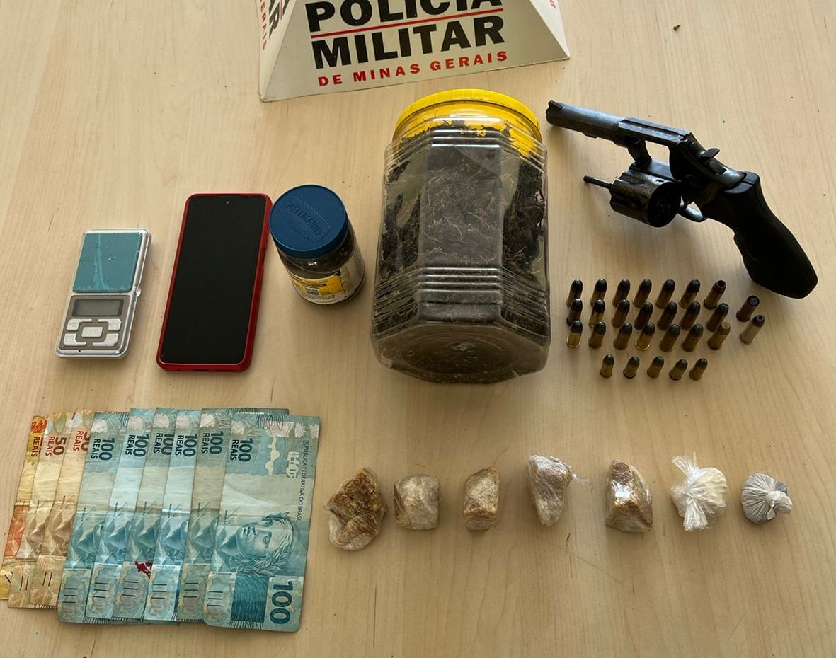 Foram cumpridos mandados de busca e apreensão expedidos pelo Poder Judiciário, nas cidades de Manhumirim, Alto Jequitibá e Iúna/ES, sendo apreendidos ao todo 02 revólveres calibre 38, 24 munições calibre 38, 01 munição calibre 357, 05 munições calibre 32, 05 porções de crack, 01 porção de cocaína, 02 potes e 01 bucha de maconha, além de R$720,00 e 01 balança de precisão.