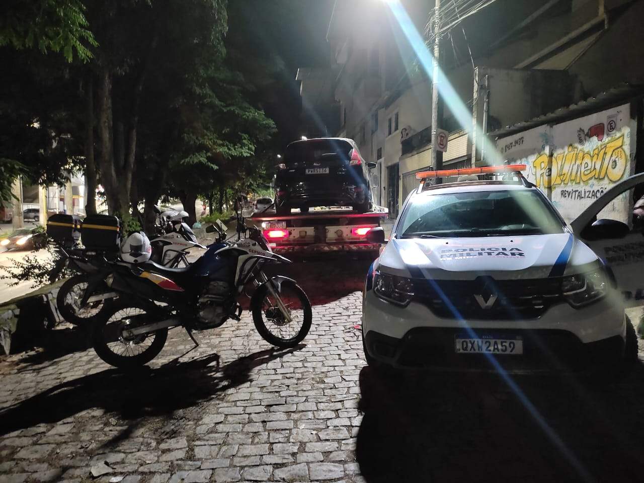Os militares levantaram informações que, durante a madrugada, o autor teria furtado o carro Fiesta que estava estacionado na rua. A vítima disse que seu filho saiu no veículo e ao retornar acabou esquecendo os vidros abertos e a chave na ignição.