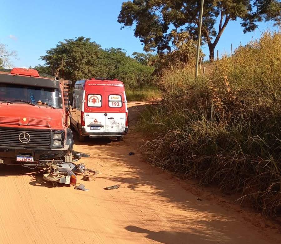 MUTUM (MG) - O SAMU socorreu uma vítima de um acidente entre uma moto e um caminhão no córrego Pica-Pau, em Mutum, na tarde de quarta-feira, 24/04.