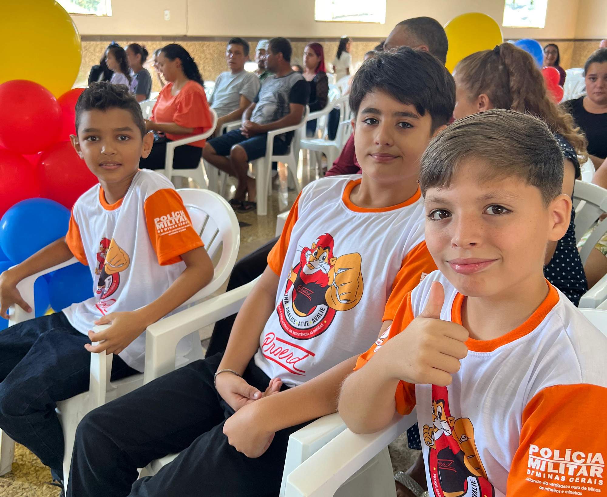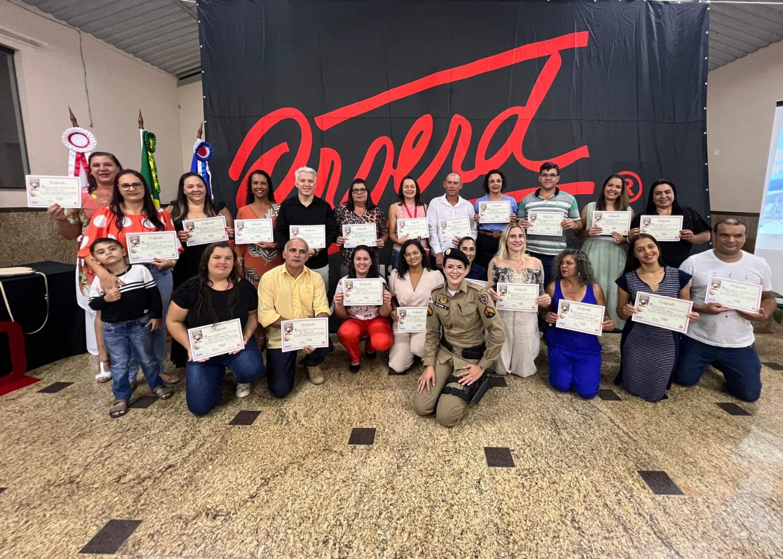 Em Simonésia, nos dias 25 e 26, aconteceram as solenidades de formatura de 98 alunos do 4º, 5º e 7º anos do ensino fundamental e da primeira turma de PROERD para pais e responsáveis.