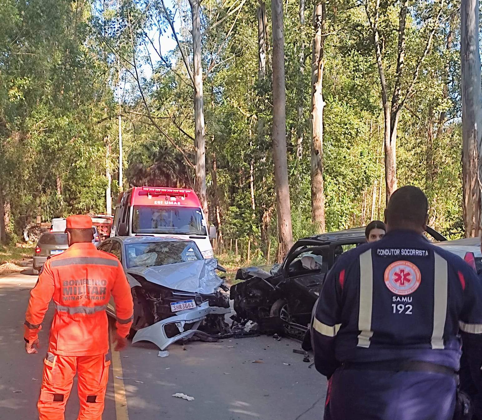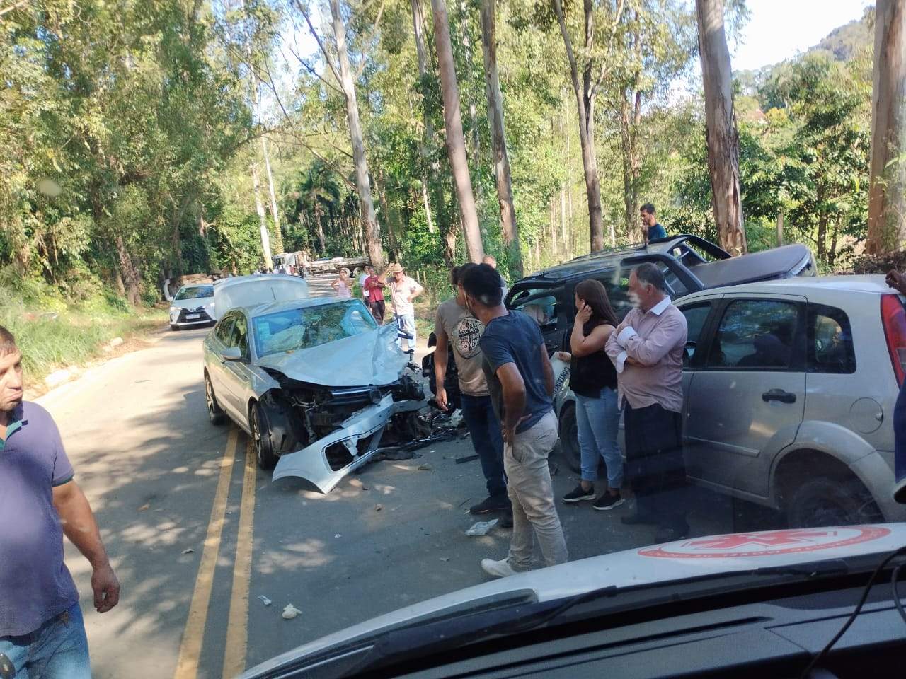 O Corpo de Bombeiros foi acionado pela Polícia Militar Rodoviária por conta do acidente envolvendo cinco veículo. A colisão foi entre um caminhão e quatro automóveis de passeio.