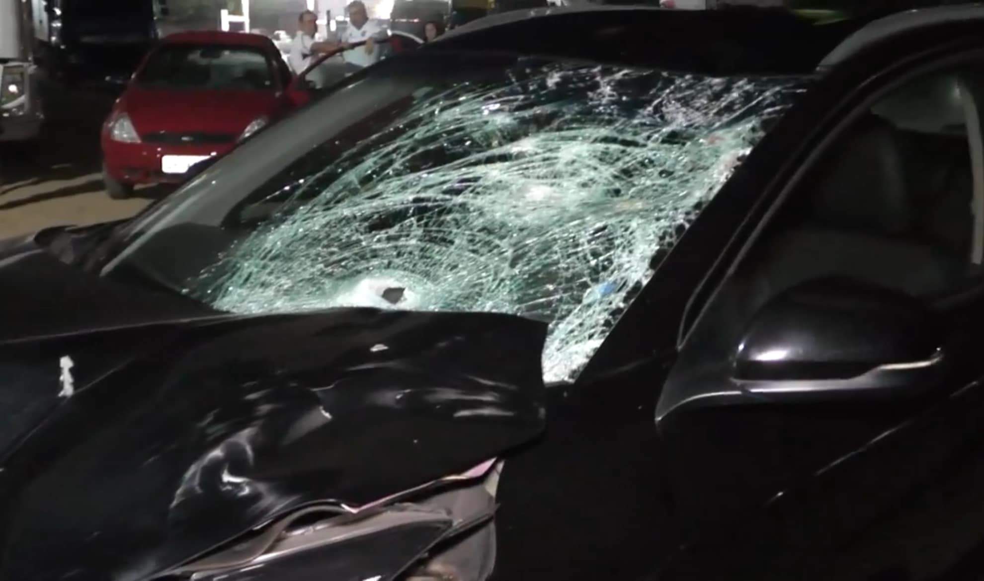 O condutor do carro envolvido no acidente não sofreu ferimentos e permaneceu no local para prestar informações às autoridades.