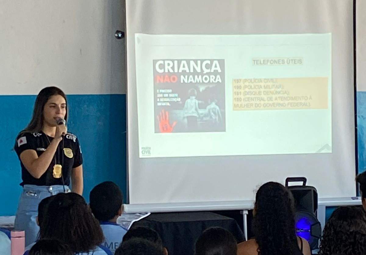 A delegada Bruna de Araújo conduziu uma palestra informativa e esclarecedora para os alunos da Escola Municipal Senador Cupertino. A palestra, realizada em ambos os turnos escolares, teve como objetivo principal orientar os estudantes sobre a importância de identificar e denunciar qualquer forma de violência sexual que eles ou seus familiares próximos possam sofrer.