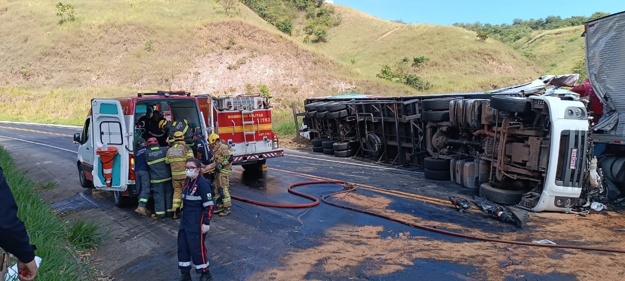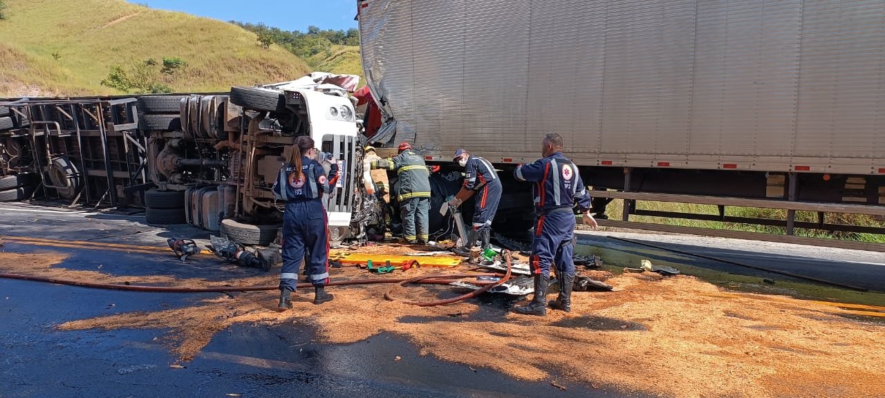 “Chegamos e nos deparamos com uma cena muito complicada, um dos motoristas foi socorrido com ferimentos leves e encaminhado à Unidade de Emergência do Hospital César Leite, em Manhuaçu. Já o outro condutor estava preso em meio às ferragens da cabine do veiículo, que ficou completamente destruída com o impacto da batida. Iniciamos o corte da lataria com muito cuidado e, após a chegada de um guincho da empresa Via Minas, conseguimos arrastar um pouco a carreta para liberar espaço e assim o retiramos da cabine, em estado grave e entregue à uma equipe médica do SAMU, que já estava no local”, explicou Sargento Maiquel, do Corpo de Bombeiros de Manhuaçu.