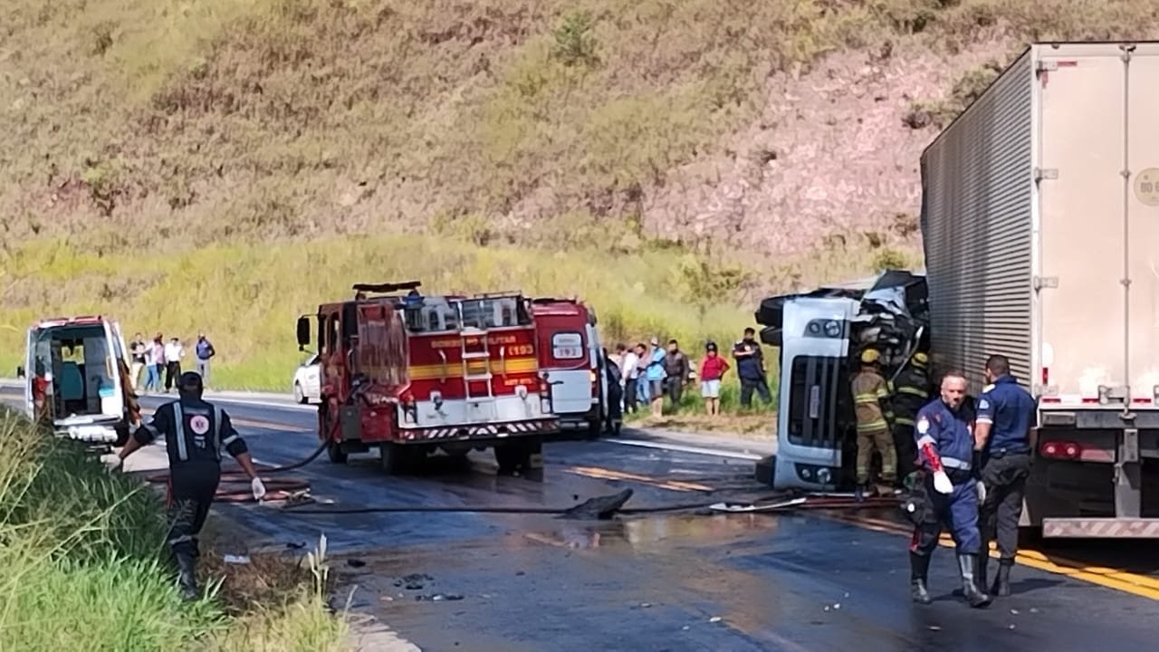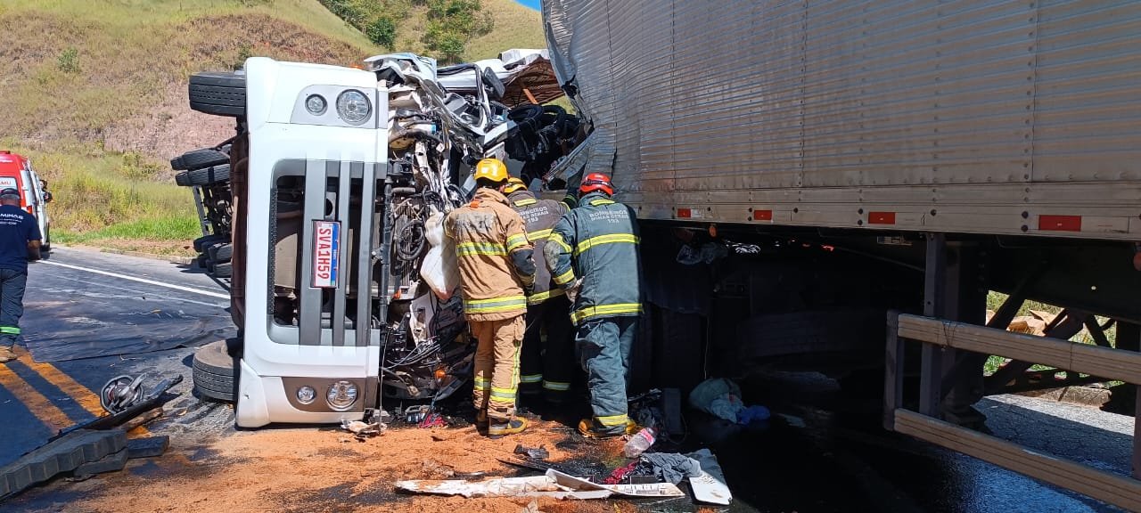 REDUTO (MG) - Uma pessoa morreu e outra ficou ferida uma colisão de duas carretas km 23 da BR-262, entre Reduto e Martins Soares, no trecho da chamada serra de Jaguaraí, nesta sexta-feira, 17/05.