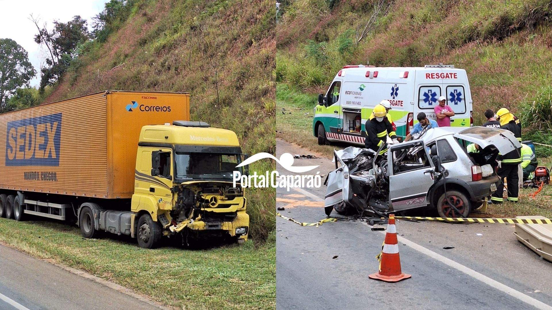 ORIZÂNIA (MG) - Duas pessoas morreram numa colisão entre um Fiat Uno e uma carreta dos Correios na madrugada deste domingo, 26/05. O acidente aconteceu no KM 637 da BR-116, em Orizânia.