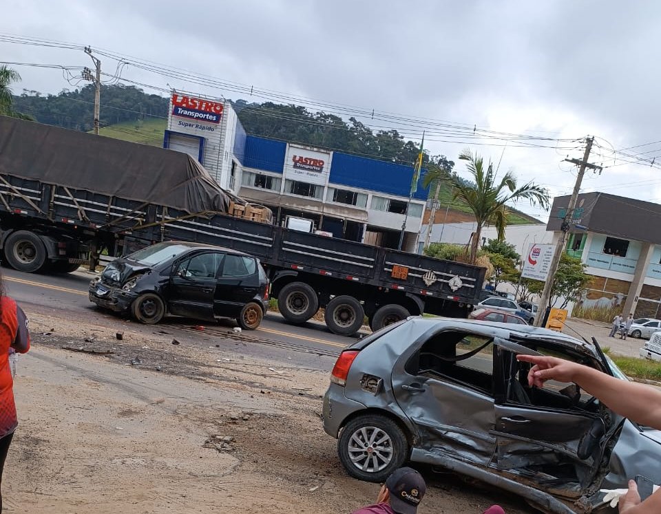 MANHUAÇU (MG) - Durante a manhã desta segunda-feira, 27/05, dois carros bateram no trecho do km 39 da BR-262, na região da Ponte da Aldeia, no perímetro urbano de Manhuaçu.
