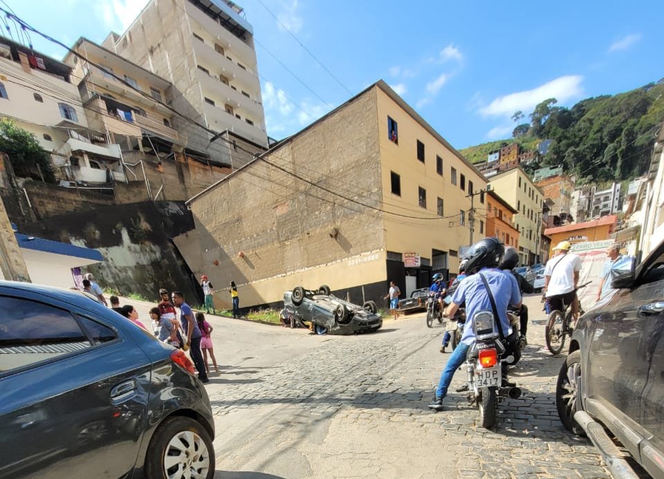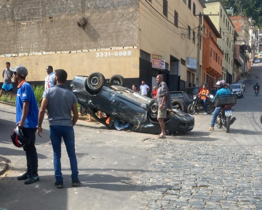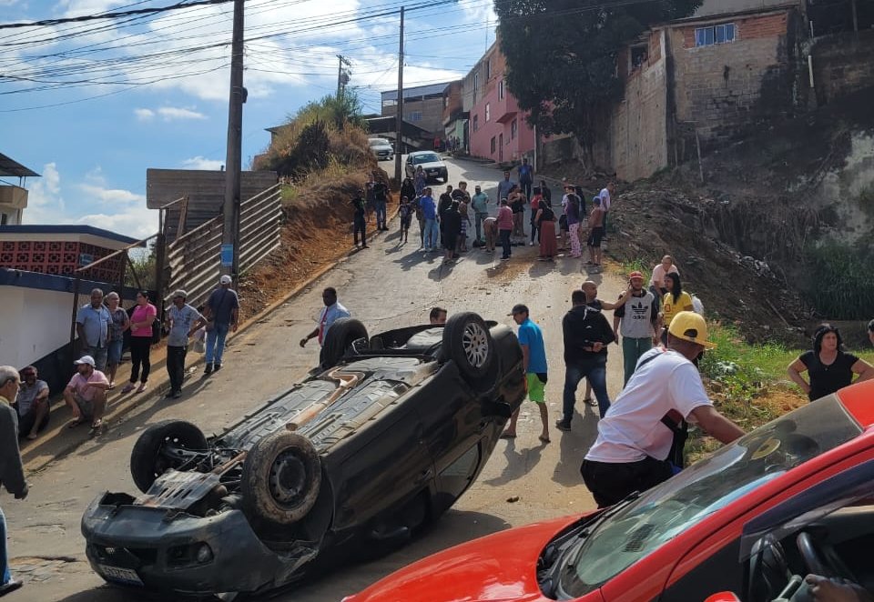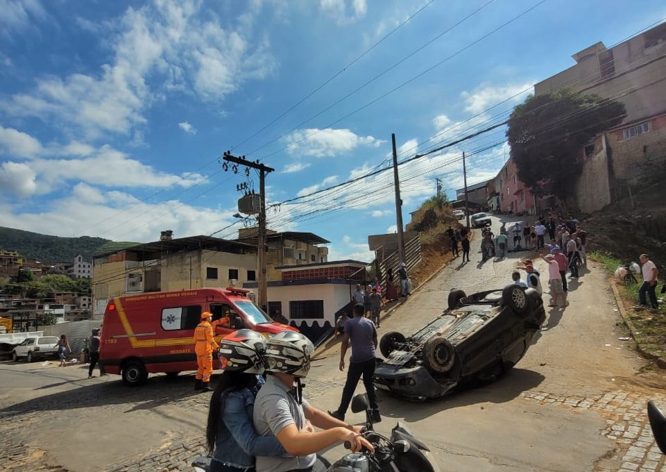 MANHUAÇU (MG) - Um veículo Siena desceu desgovernado a rua José Bertolace de Barros. no bairro Santa Terezinha, em Manhuaçu e, após atropelar uma mulher, capotou na subida do morro. O acidente foi no final da manhã desta sexta-feira, 31/05.
