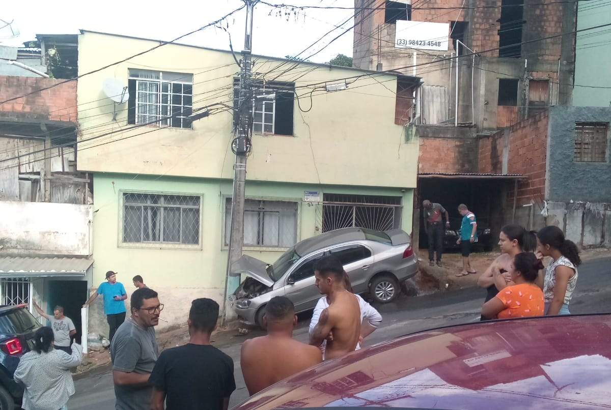 MANHUAÇU (MG) - Um carro perdeu o freio e desceu a rua Domingos Labanca, no bairro Operários, no domingo, 23/06, em Manhuaçu.