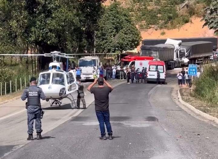 Um helicóptero do Núcleo de Operações e Transporte Aéreo (Notaer) foi acionado para resgatar o motorista de uma das carretas, que acabou preso às ferragens. Em estado grave, a vítima foi levada de helicóptero para o Hospital Estadual de Urgência e Emergência, em Vitória O nome e idade das vítimas não foram informados.