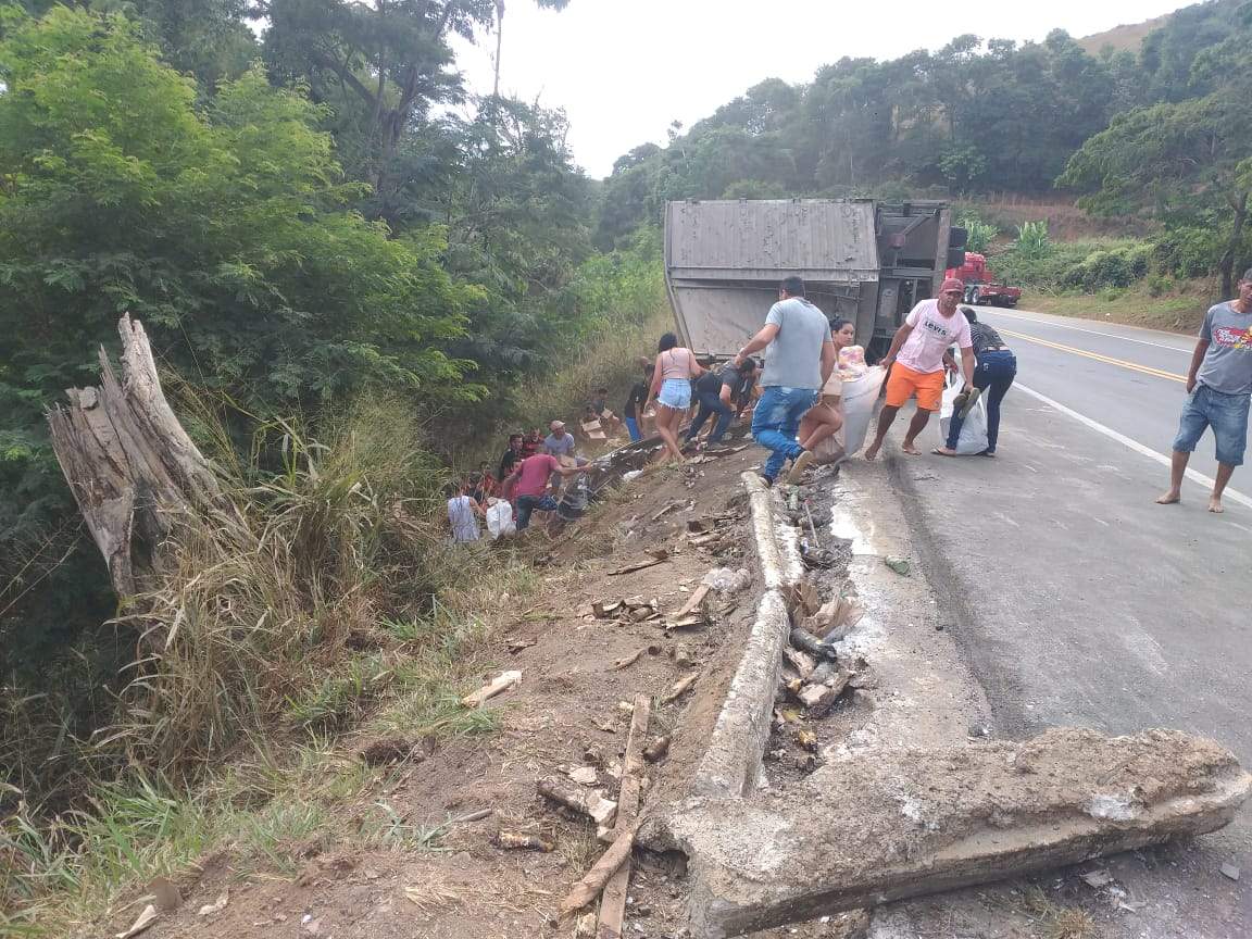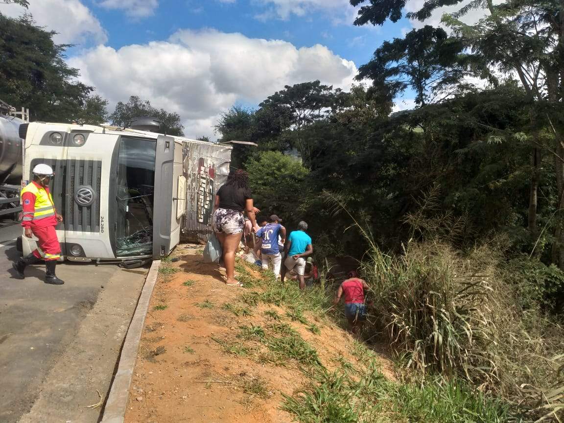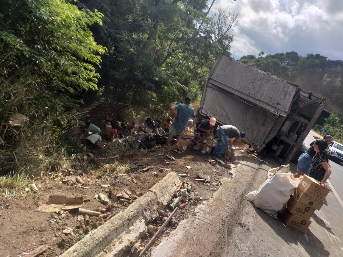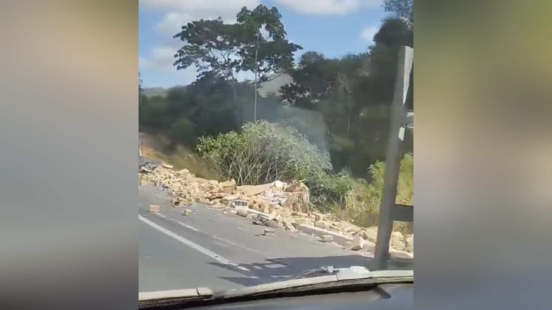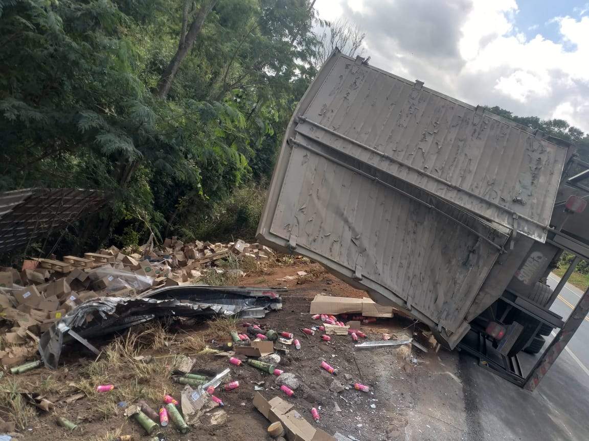 Nesta sexta-feira, 12/07, uma carreta com produtos químicos e outros materiais tombou no trecho considerado perigoso da rodovia federal. O motorista não sofreu ferimentos.