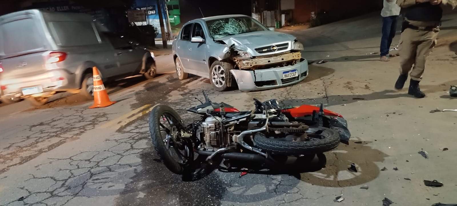MANHUAÇU (MG) - Colisão entre carro e motocicleta na avenida Tancredo Neves, no início da noite desta terça-feira, 16/07, em Manhuaçu.
