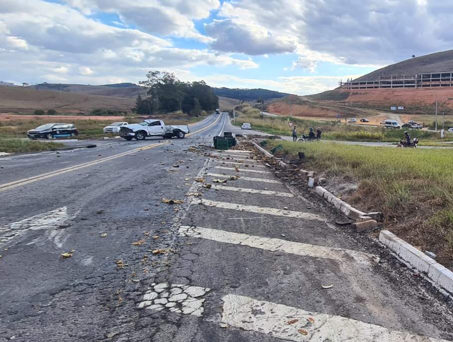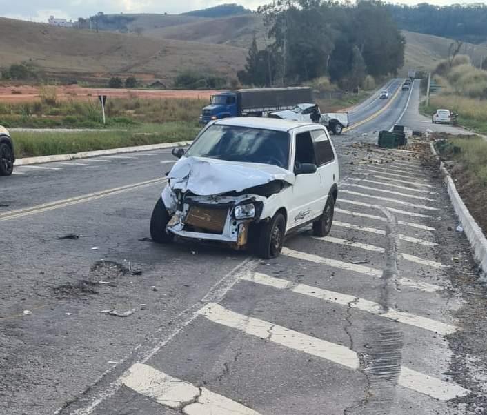 Segundo as informações iniciais, o Fiat Uno fez a travessia da pista no trevo quando colidiu com a picape, que seguia pela BR-262.