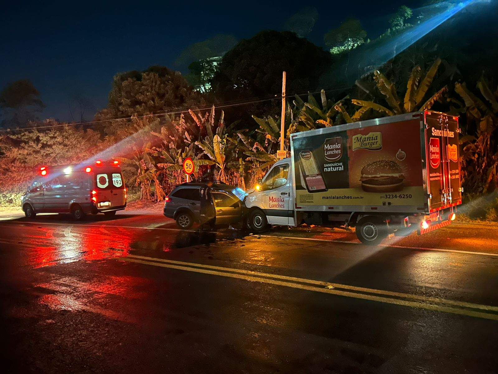 ABRE CAMPO (MG) - Uma colisão frontal envolvendo um caminhão e um Fiat Palio ocorreu por volta de 00h15 da última quinta-feira, 22/08, no km 94 da BR-262, próximo ao trevo de Abre Campo. O acidente resultou em dois feridos que estavam no Palio.